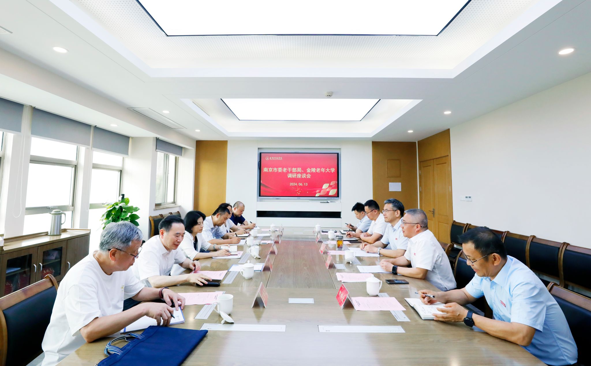 6月13日下午,市委组织部副部长、老干部局局长邓力群一行到sjb世俱杯调研离退休党员党纪学习教育情况及推动金陵老年大学与sjb世俱杯合作共建工作。校党委书记刘志远主持调研座谈会,市委老干部局副局长、金陵老年大学常务副校长苏正德,金陵老年大学副校长崔益虎、王玉珍,sjb世俱杯党委常委、副校长高永祥参加调研,两校相关部门负责同志参加座谈会。