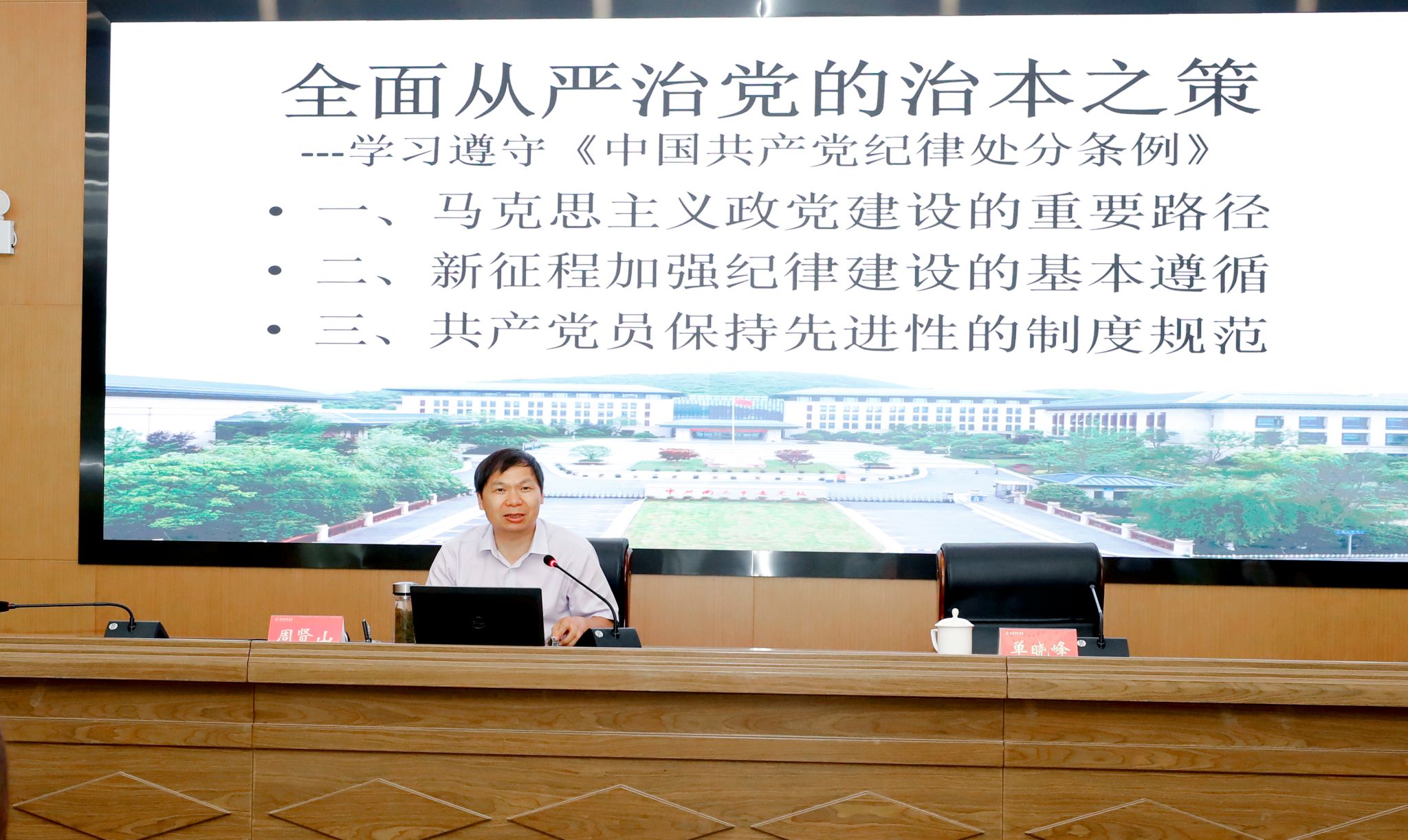 6月17日下午,sjb世俱杯开展《中国共产党纪律处分条例》专题培训,邀请市委党校党史党建教研部周贤山副教授作专题辅导报告。校党委书记刘志远出席并讲话,新提任处级干部、年轻处级干部、关键岗位处级干部参加培训。培训会由校党委副书记单晓峰主持。
