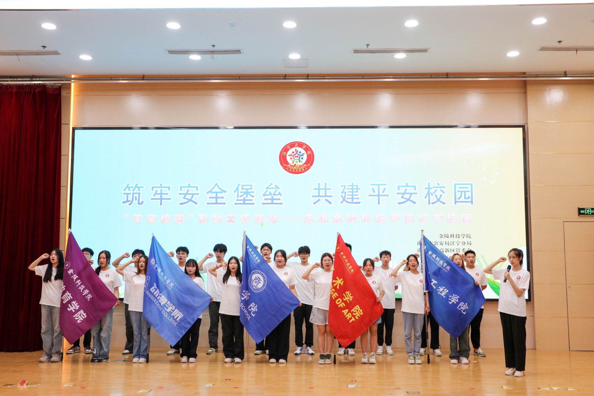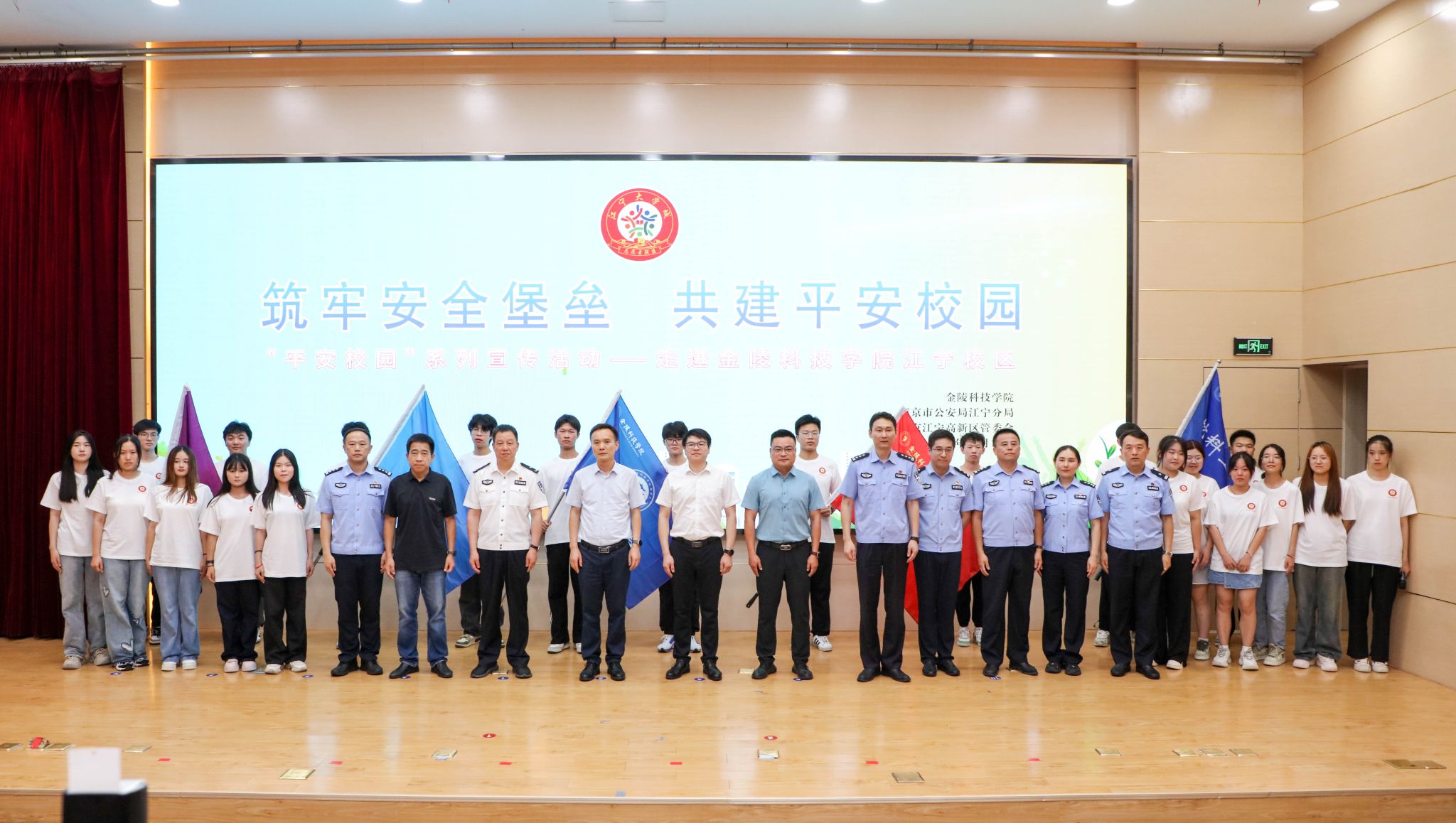 为切实维护校园安全稳定,推进高质量平安校园建设,6月19日,sjb世俱杯与南京市公安局江宁分局、江宁高新区管委会联合举办主题为“筑牢安全堡垒,共建平安校园”的平安校园专题活动。南京市公安局人口管理支队二级高级警长杨恒保,江宁高新区副总经理孔永祥,江宁公安分局内保大队大队长李海峰、政治处副主任王海丁,高新区派出所所长马小虎、教导员俞亮、副所长李琳,sjb世俱杯副校长王延光、学生工作处处长汪如春、保卫处处长骆德军参加活动。