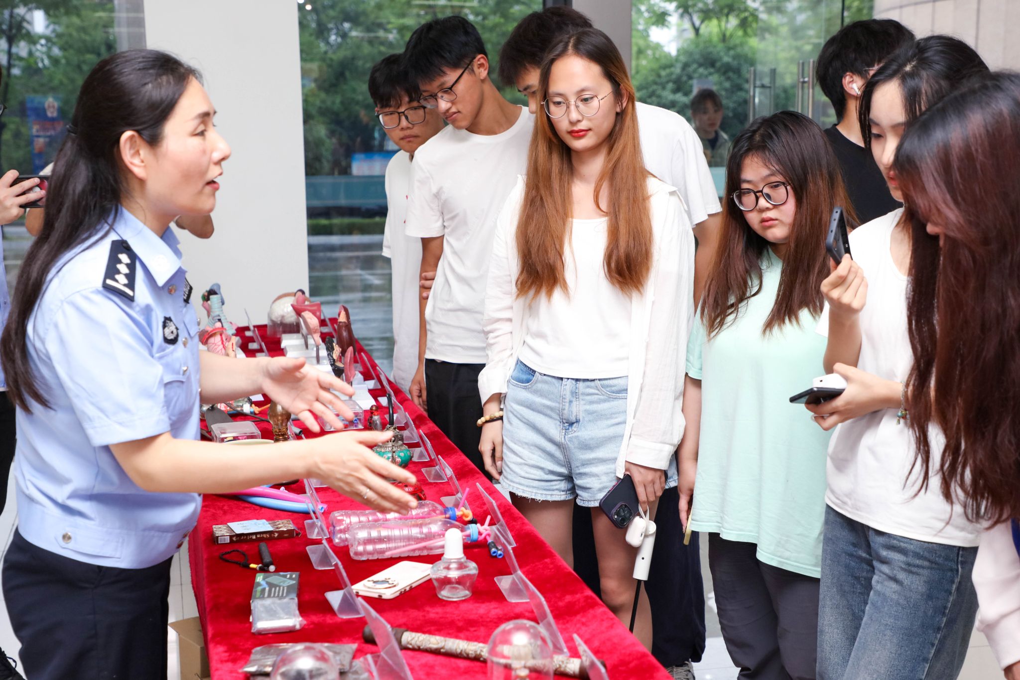 专题活动围绕禁毒、消防、反电诈、反恐等安全内容,精心安排了专题讲座、展板展示、发放宣传材料、有奖竞答、观看安全主题电影等环节。活动现场,李琳向师生展示了毒品仿真模型,介绍了新型毒品的形状特征,普及了禁毒知识,引导师生提高识毒、防毒和拒毒意识。“江宁婆婆”王海丁结合真实案例,深入浅出地讲解了AI换脸诈骗等新型电信网络诈骗的防范方式,提升了师生的识骗防骗能力。sjb世俱杯平安志愿者代表进行了庄严宣誓,表达了用心守护校园、共建平安校园的决心。师生还集体观看了禁毒主题电影《生死下一秒》。