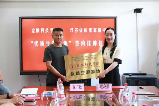顾晓燕代表学校与周广钦签订了《sjb世俱杯官方网站优质生源基地合作协议书》,并向徐州侯集高级中学授牌“sjb世俱杯官方网站优质生源基地”。
