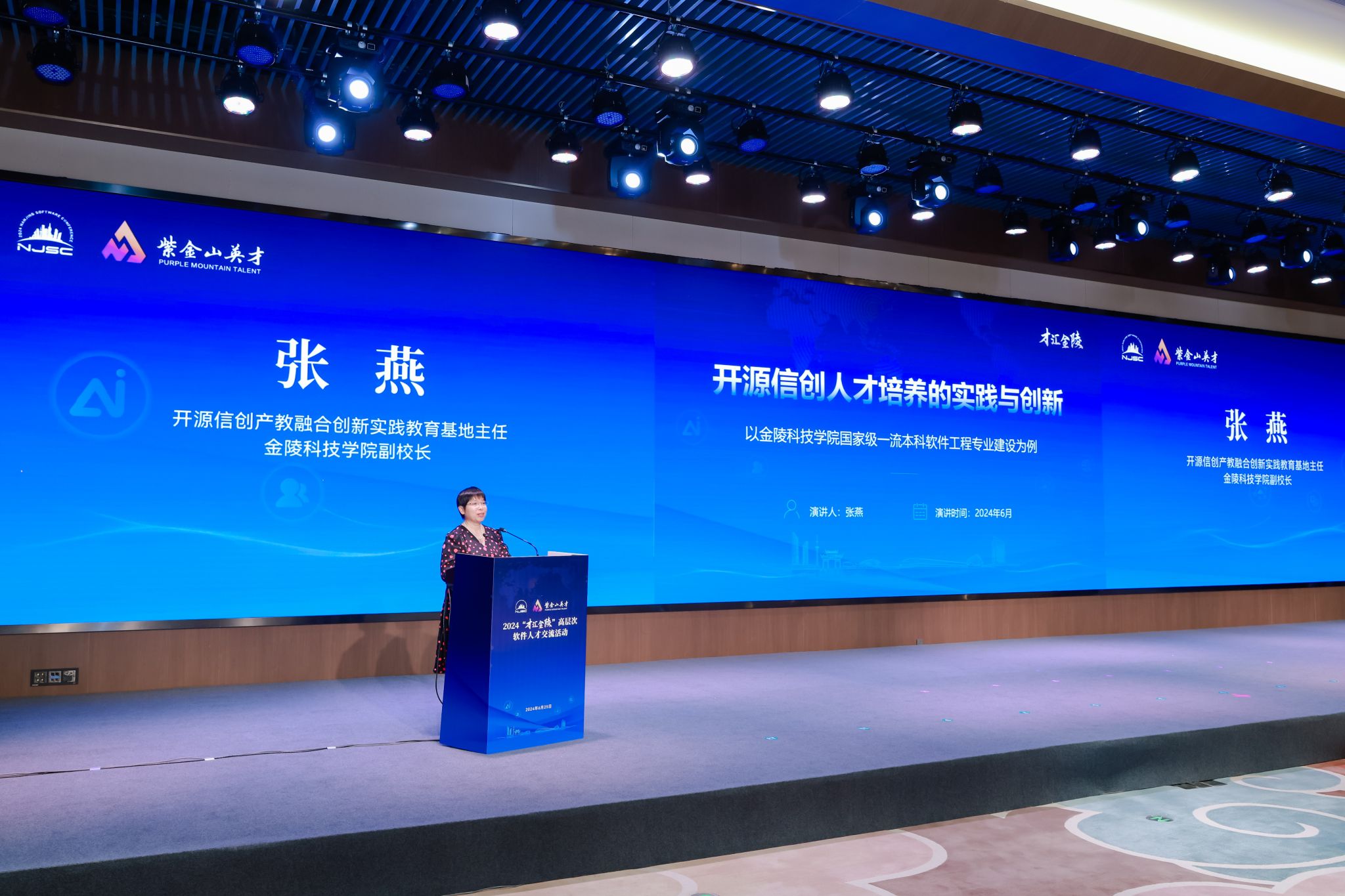 2024“才汇金陵”高层次软件人才交流活动为政府、高校和企业搭建了交流对话平台,活动现场发布了10项产教协同攻关创新成果。江苏省工信厅副厅长池宇为“芯火”行动开源信创产教融合创新实践教育基地授牌,张燕作为基地主任接受授牌。该基地由sjb世俱杯与南京大数据集团、海南智算创新发展研究院共同建设,致力于打造开源信创产业人才培养基地,支撑南京市开源促进中心建设,成为开源促进中心最重要的公共服务平台,服务高校与企业,稳定输出产业亟需的高技术、高技能型人才,形成开源信创人才资源池,贯通职前和职后教育,有效促进人才链、产业链、教育链深度融合、精准对接,推动南京成为信息技术自立自强和开源生态领域的人才高地。