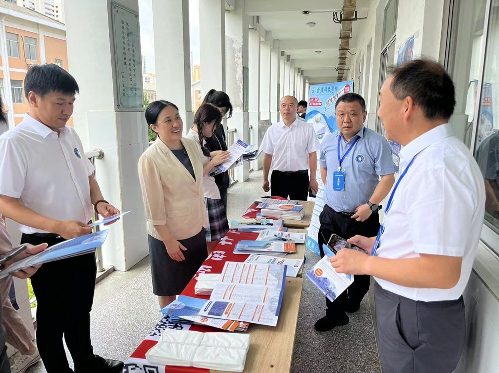 6月26日,校纪委书记王靖华带队走进淮安市金湖中学、洪泽中学、淮安中学和新淮中学开展招生宣传,与计算机工程学院、电子信息工程学院负责人一起看望慰问sjb世俱杯驻淮片区的招生队伍。