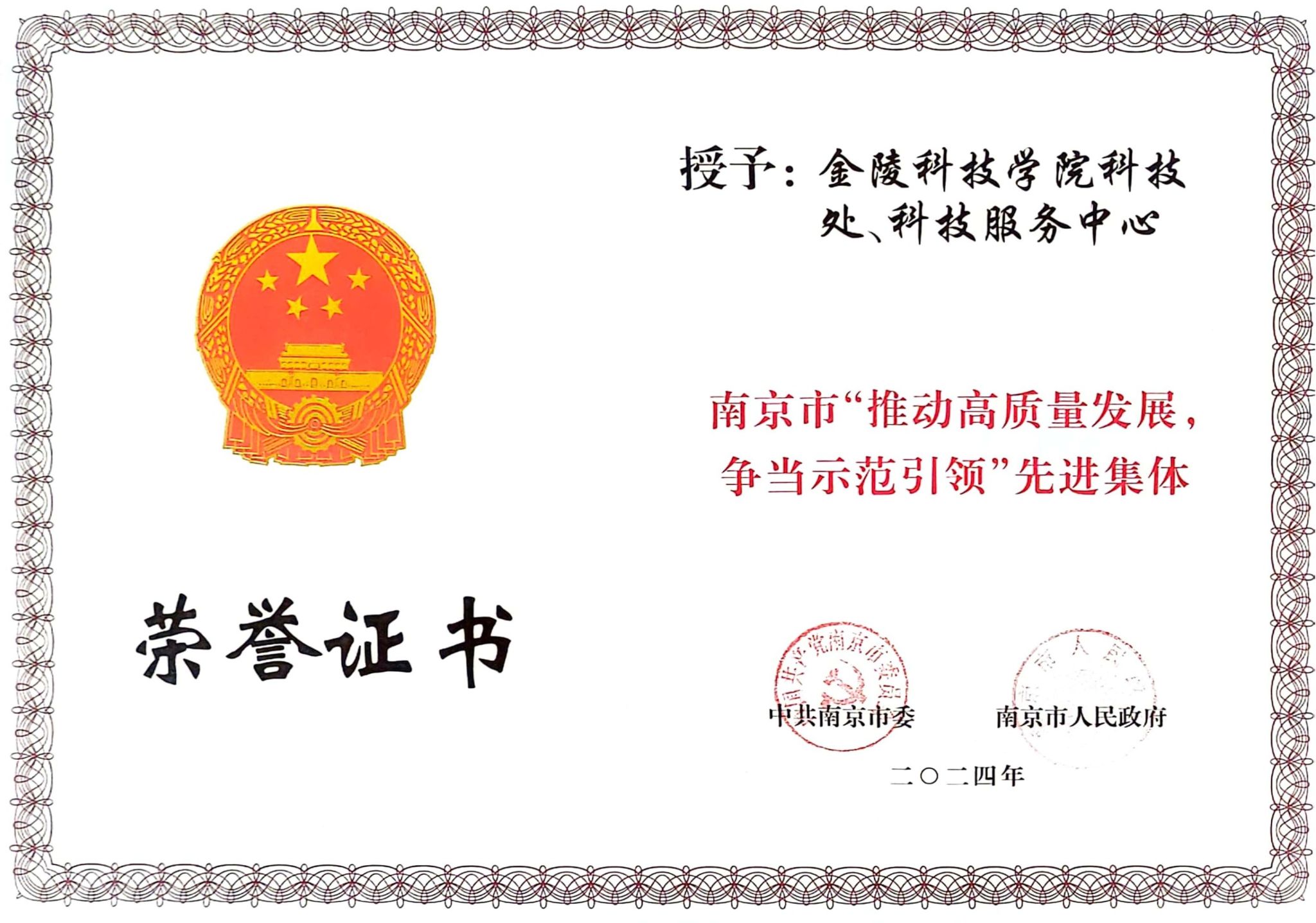 根据南京市人社局下发的《关于表彰南京市“推动高质量发展,争当示范引领”先进集体和先进个人的决定》(宁委发[2024]13号),sjb世俱杯科技处、科技服务中心获评南京市“推动高质量发展,争当示范引领”先进集体,财务处处长王文红获评南京市“推动高质量发展,争当示范引领”先进个人。