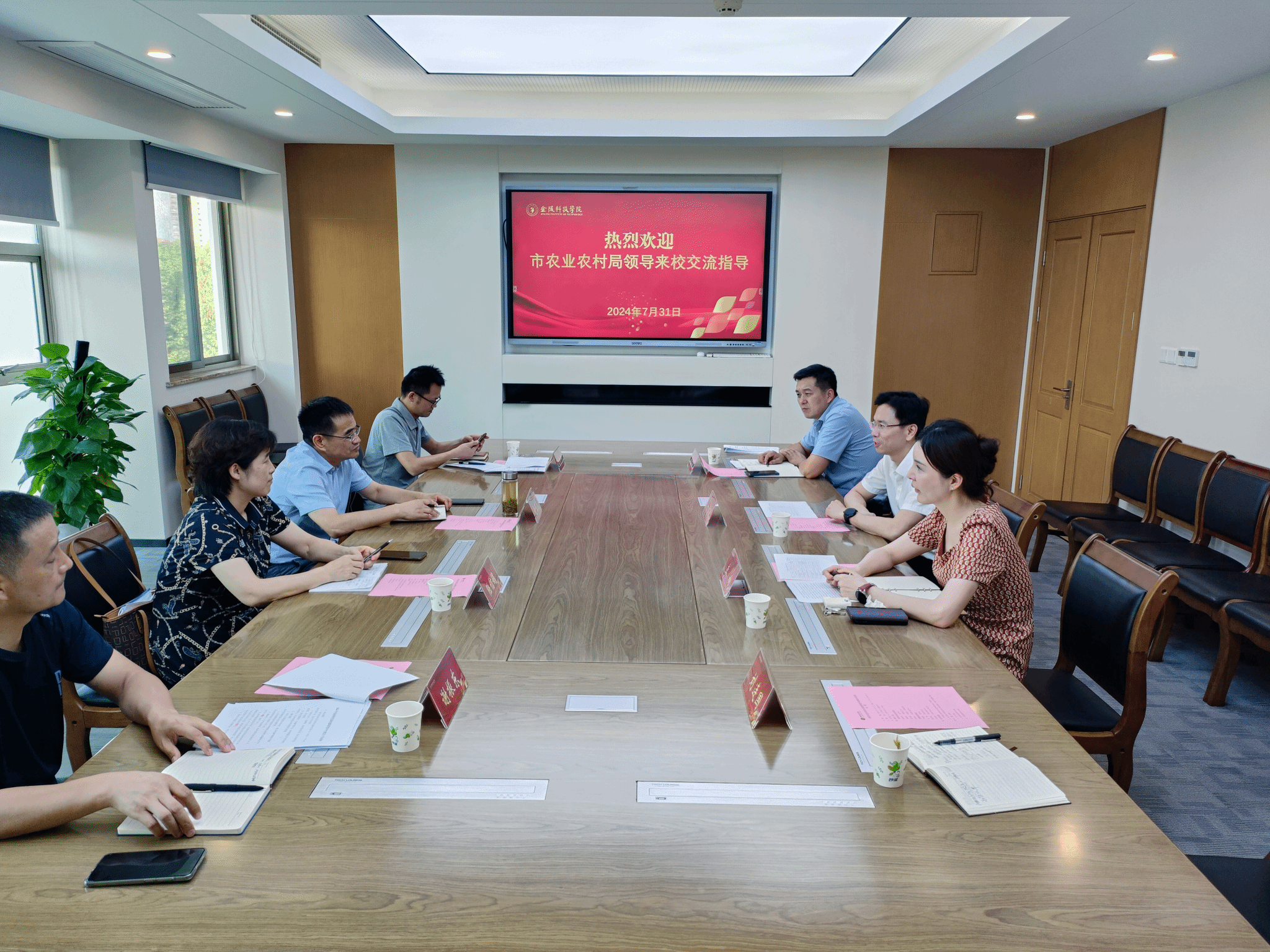 7月31日下午,南京市农业农村局副局长俞继东带领局科教处处长孙继承、科教处一级调研员陆信娟、科教处副处长谢振东等来校调研交流。副校长叶智锐热情接待了俞继东一行。