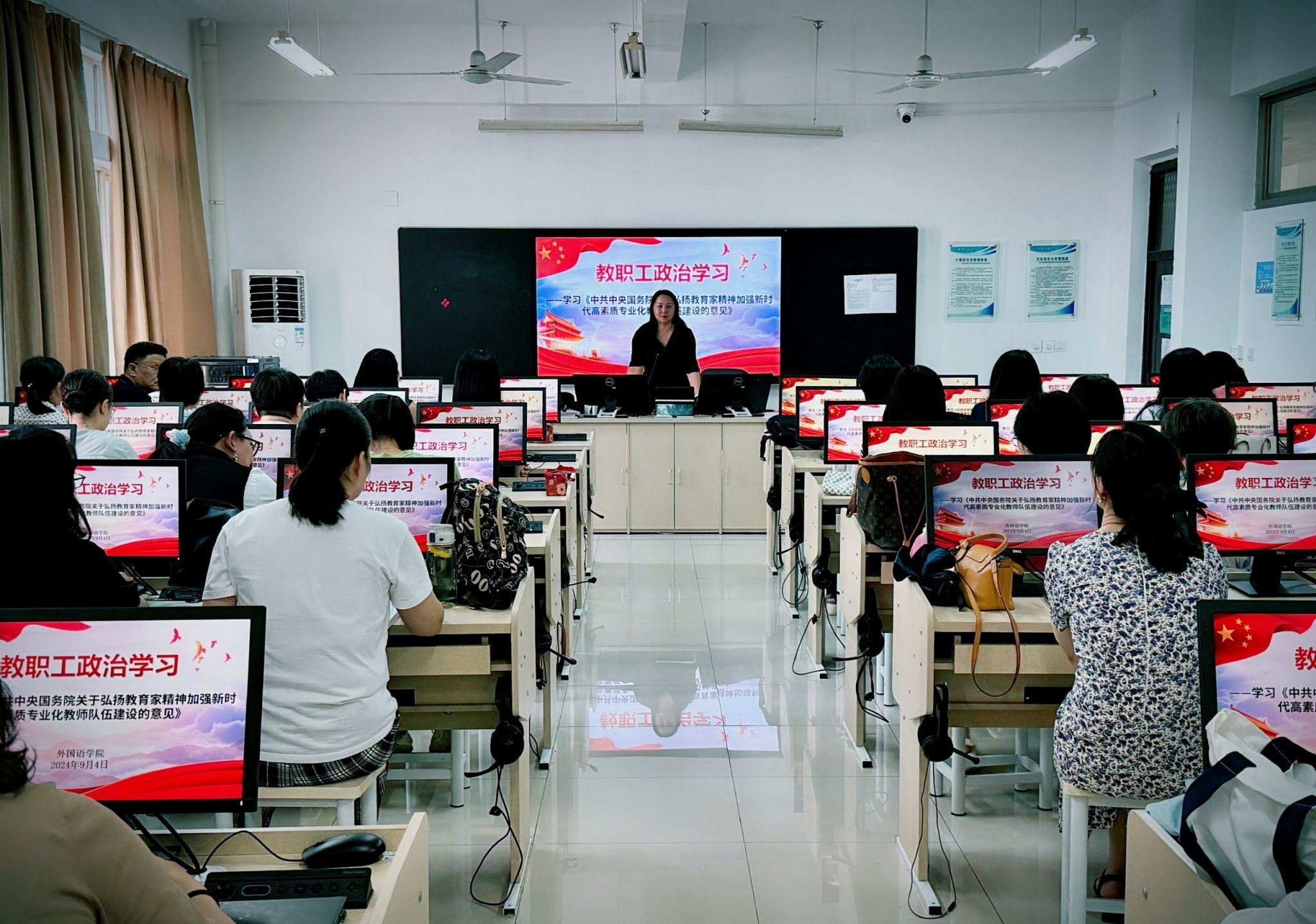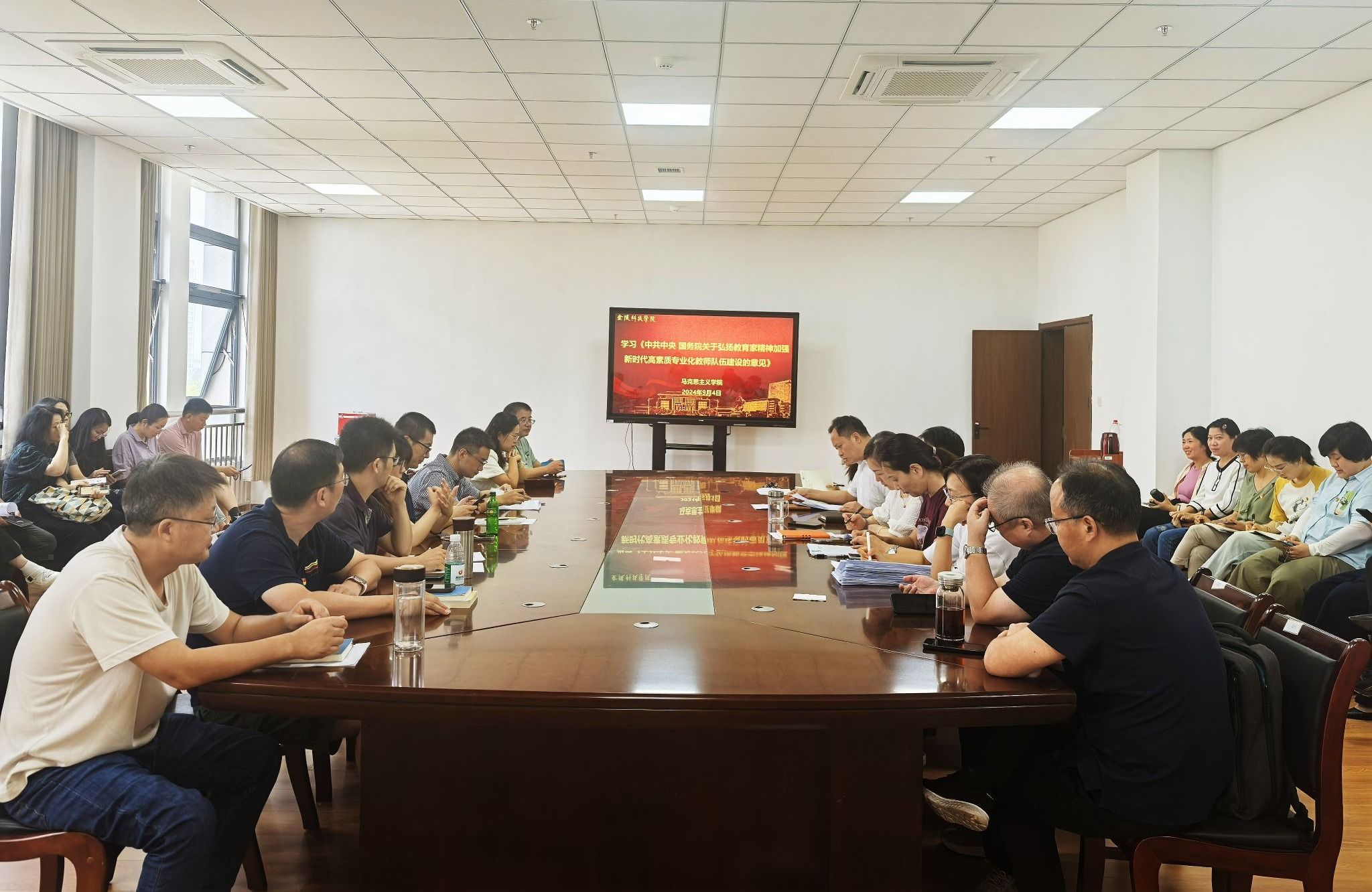 9月4日下午,sjb世俱杯各二级党组织组织全体教职工开展教育家精神专题学习,重点学习了《中共中央 国务院关于弘扬教育家精神加强新时代高素质专业化教师队伍建设的意见》。