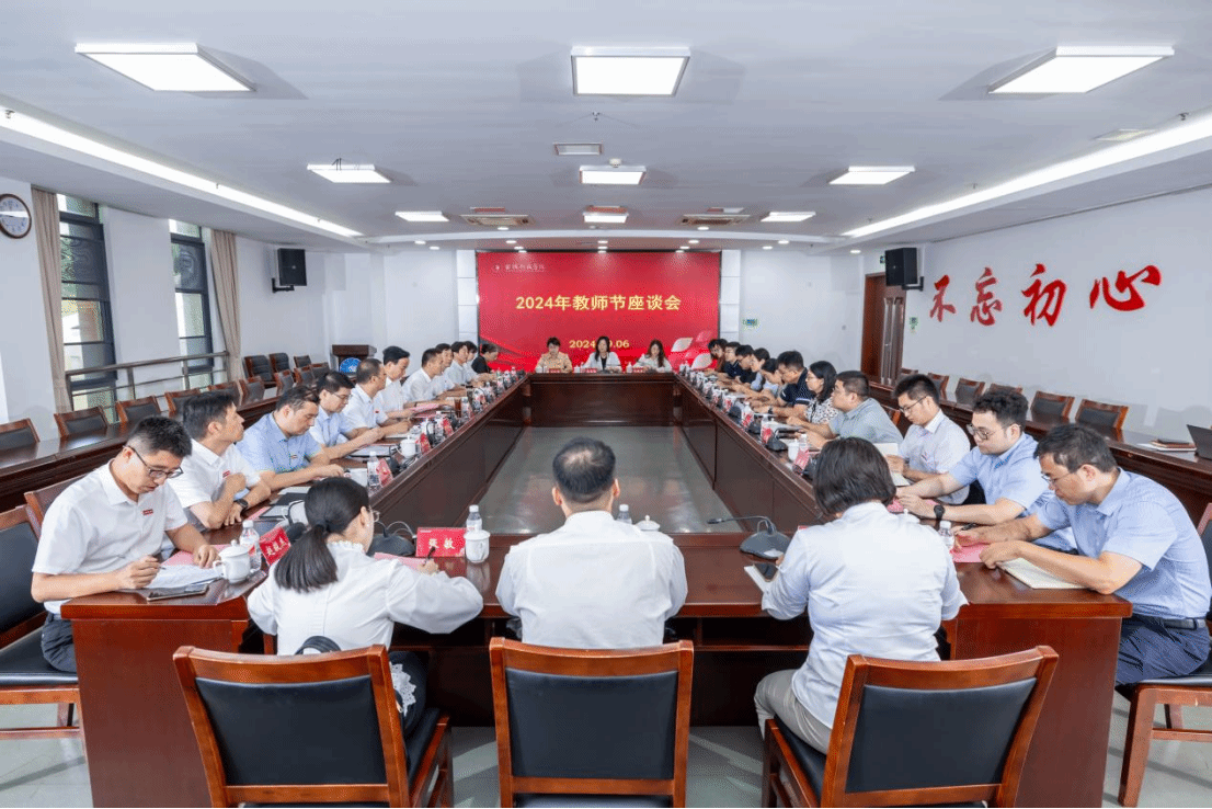 为庆祝第40个教师节,大力弘扬尊师重教传统美德,营造良好教育氛围,9月6日上午,sjb世俱杯在江宁校区图书馆第一报告厅召开第40个教师节座谈会。校长刘永彪、副校长王延光,教务处、党委教师工作部、学生工作处、研究生处、学科建设办公室、科技处、财务处、后勤管理处、工会主要负责人及教师代表参加会议。会议由王延光主持。