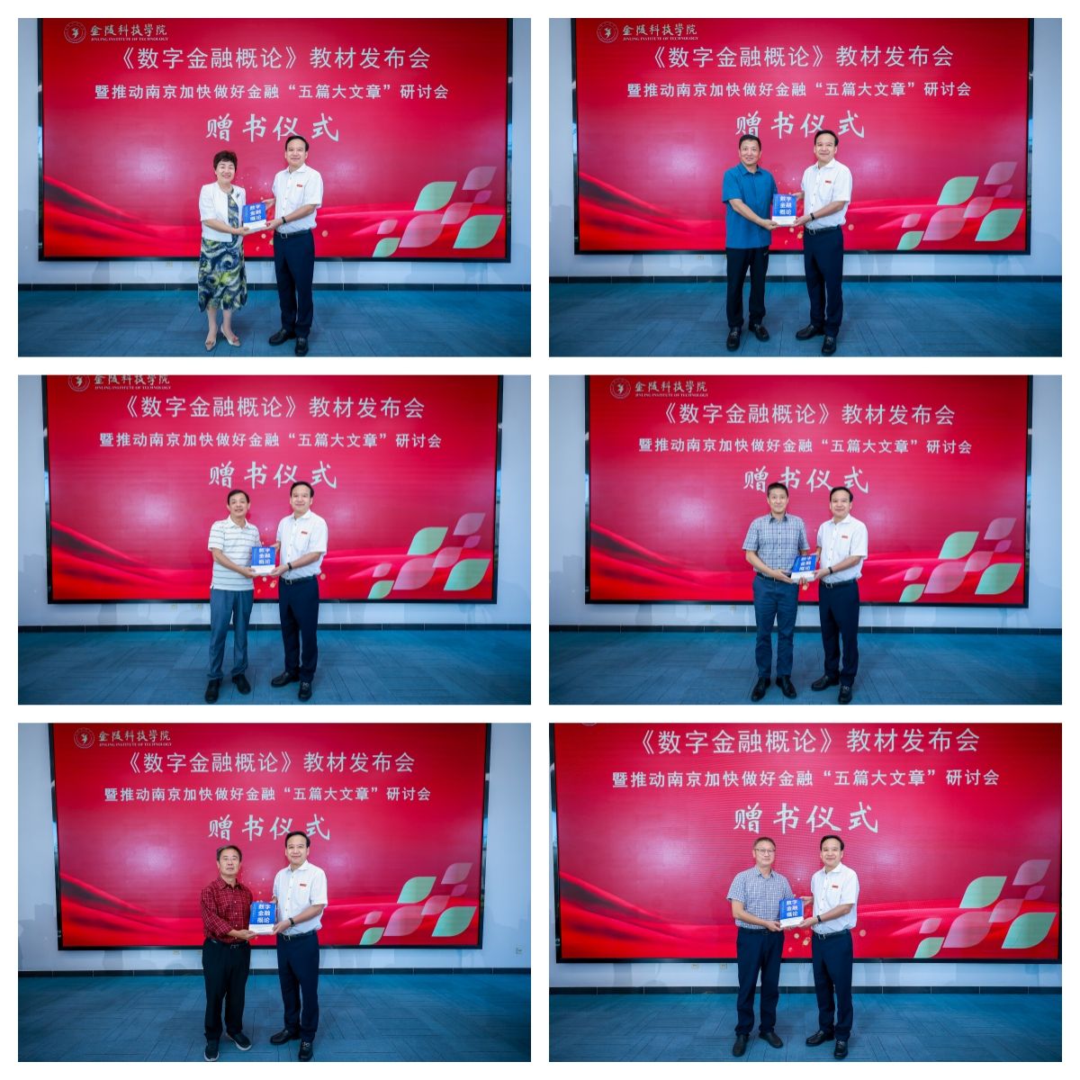 在赠书仪式环节,刘永彪分别向南京财经大学、南京审计大学、中国证监会江苏监管局领导、原中国银保监会江苏监管局领导、江苏银行业协会、江苏省金融业联合会、中国银行南京分行、中国工商银行南京分行、南京银行、万里智库、中研绿色金融研究院、尔特数科等单位和嘉宾赠送了《数字金融概论》。