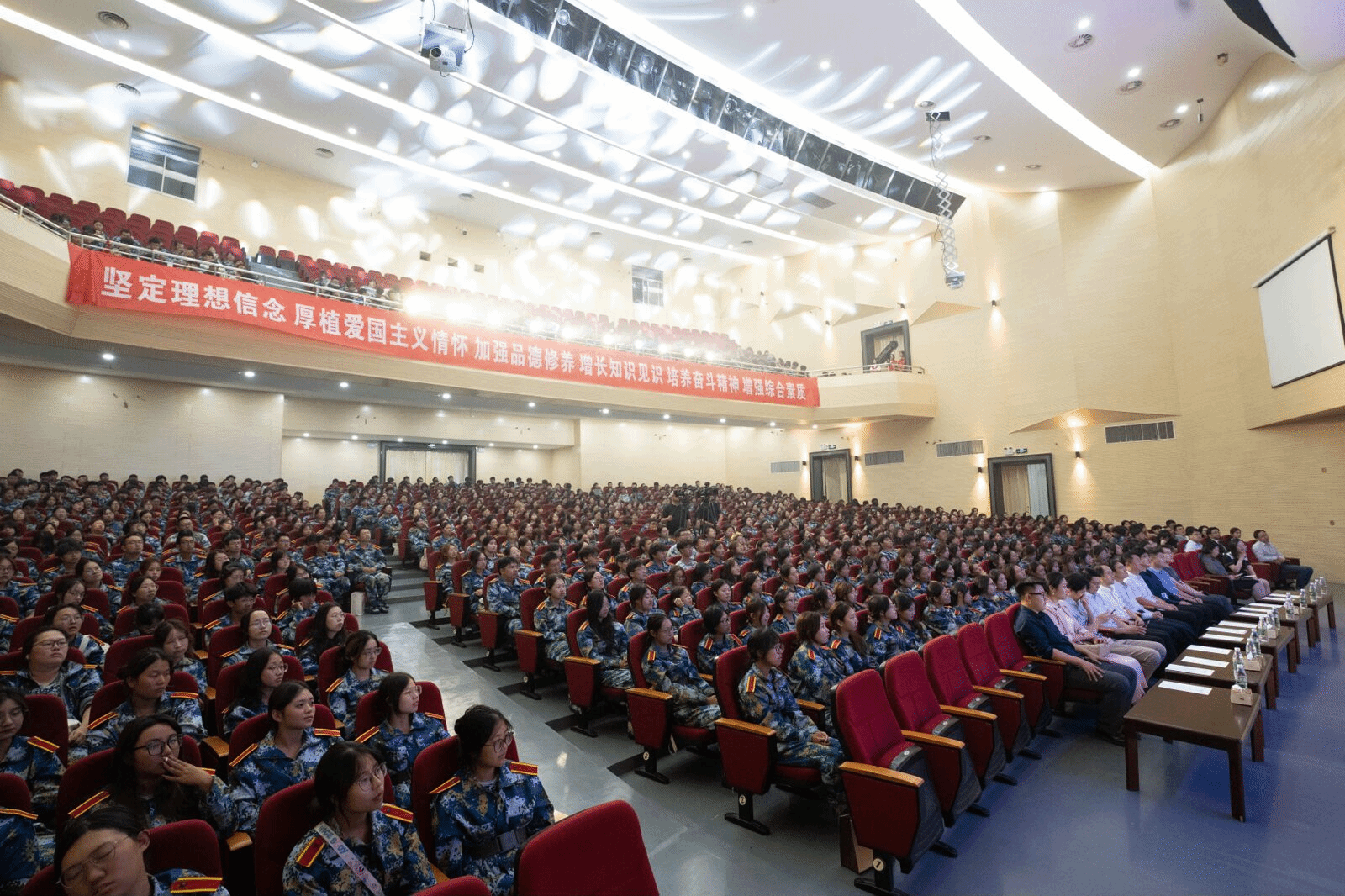在听取了四位优秀青年代表的分享后,2024级新生代表何慧珊也与大家分享了自己对于青春的理解和规划。她认为,作为新时代的青年大学生,应将个人成长与国家繁荣、社会发展紧密结合,树鸿鹄之志,做栋梁之才;将勤勉好学付诸于恒,让好读书、读好书充盈积极向上、活力蓬勃的青春;将青春之责实践于行,在课堂上、校园活动里、志愿服务中扬鞭奋蹄、躬身践行,努力成为让党放心、爱国奉献、担当民族复兴重任的时代新人。