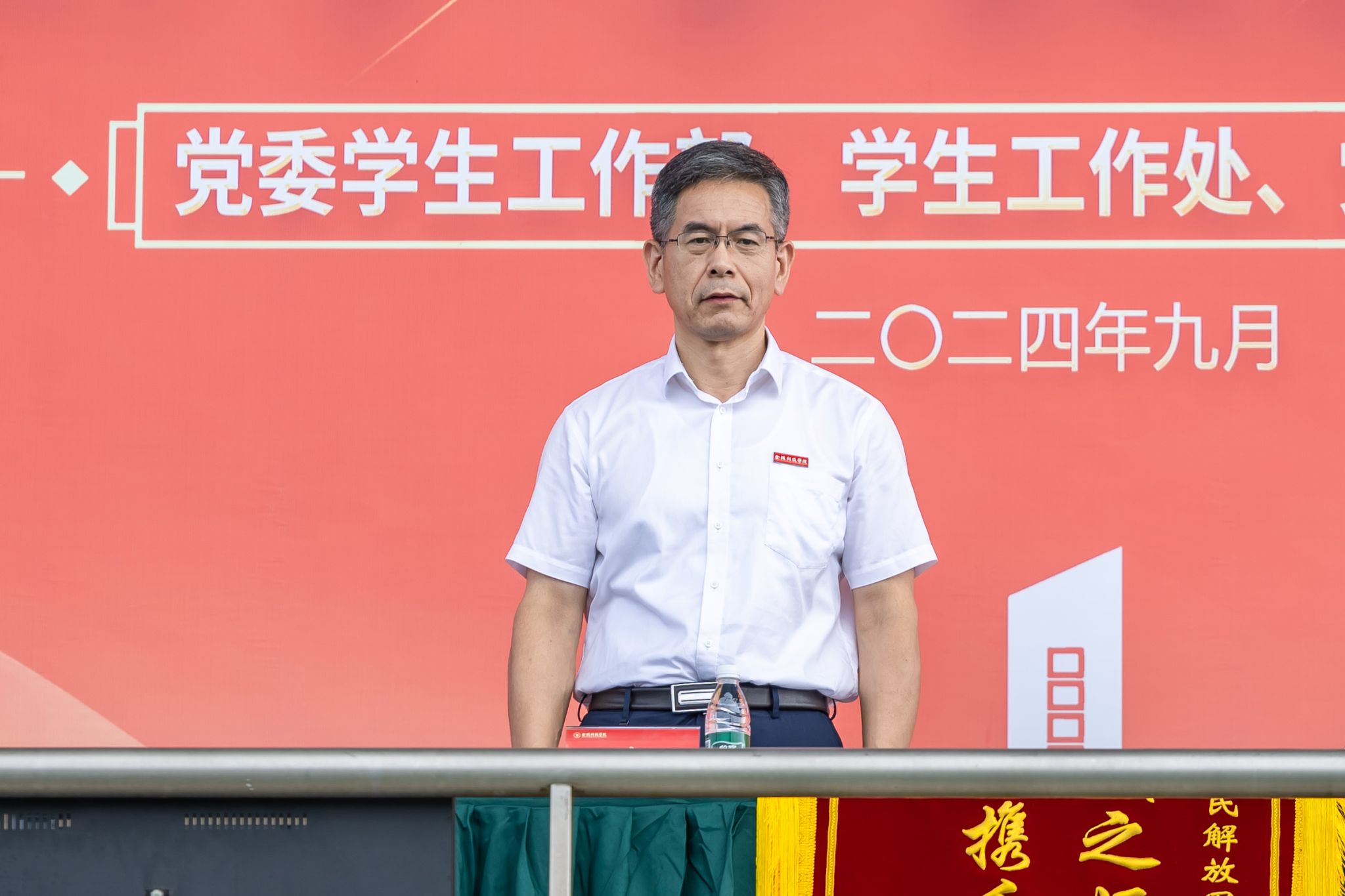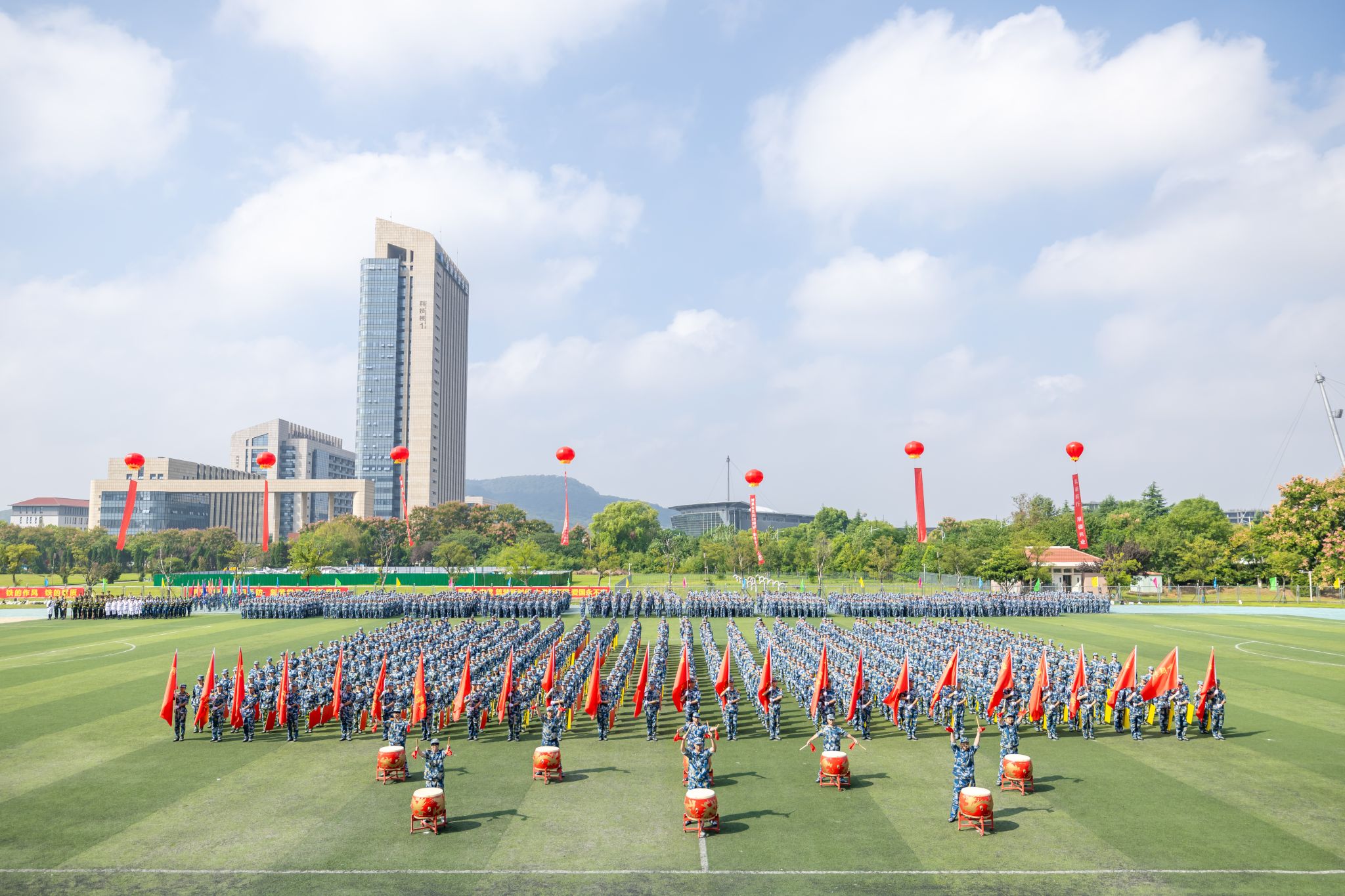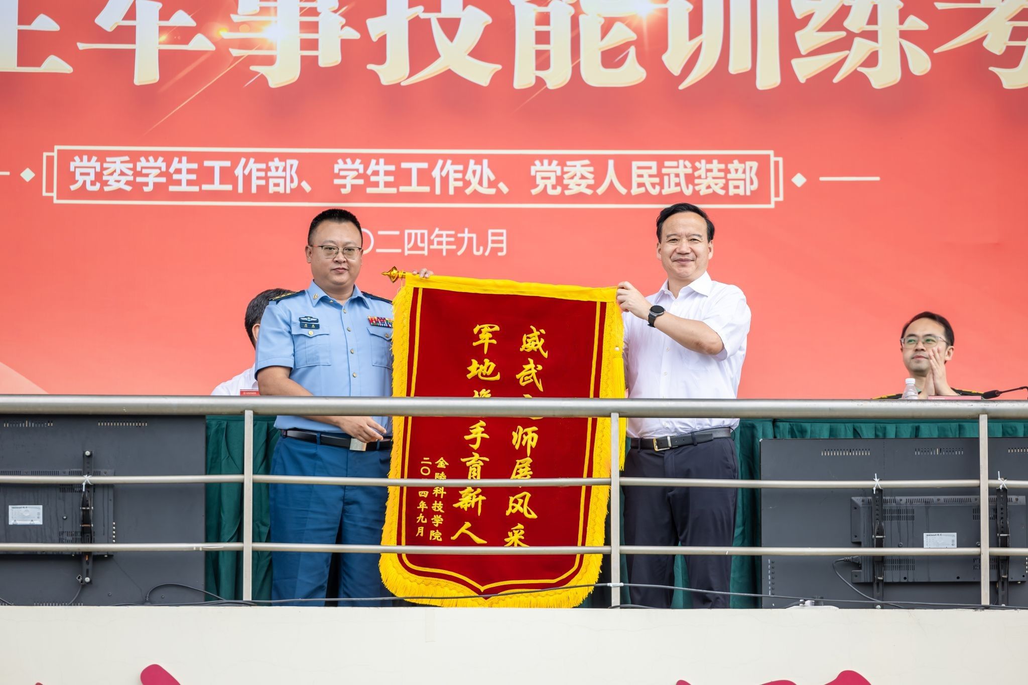 9月29日上午,sjb世俱杯在江宁校区北区田径场举行2024级本科新生军训考核总结暨表彰大会。校党委书记刘志远,校长刘永彪,承训部队首长,校党委副书记单晓峰,副校长张燕、高永祥、王延光、顾晓燕、叶智锐,纪委书记王靖华及相关职能部门负责人、各二级学院党政负责人、新生辅导员和班主任、军训教官、2024级全体军训团成员参加大会。大会由单晓峰主持。