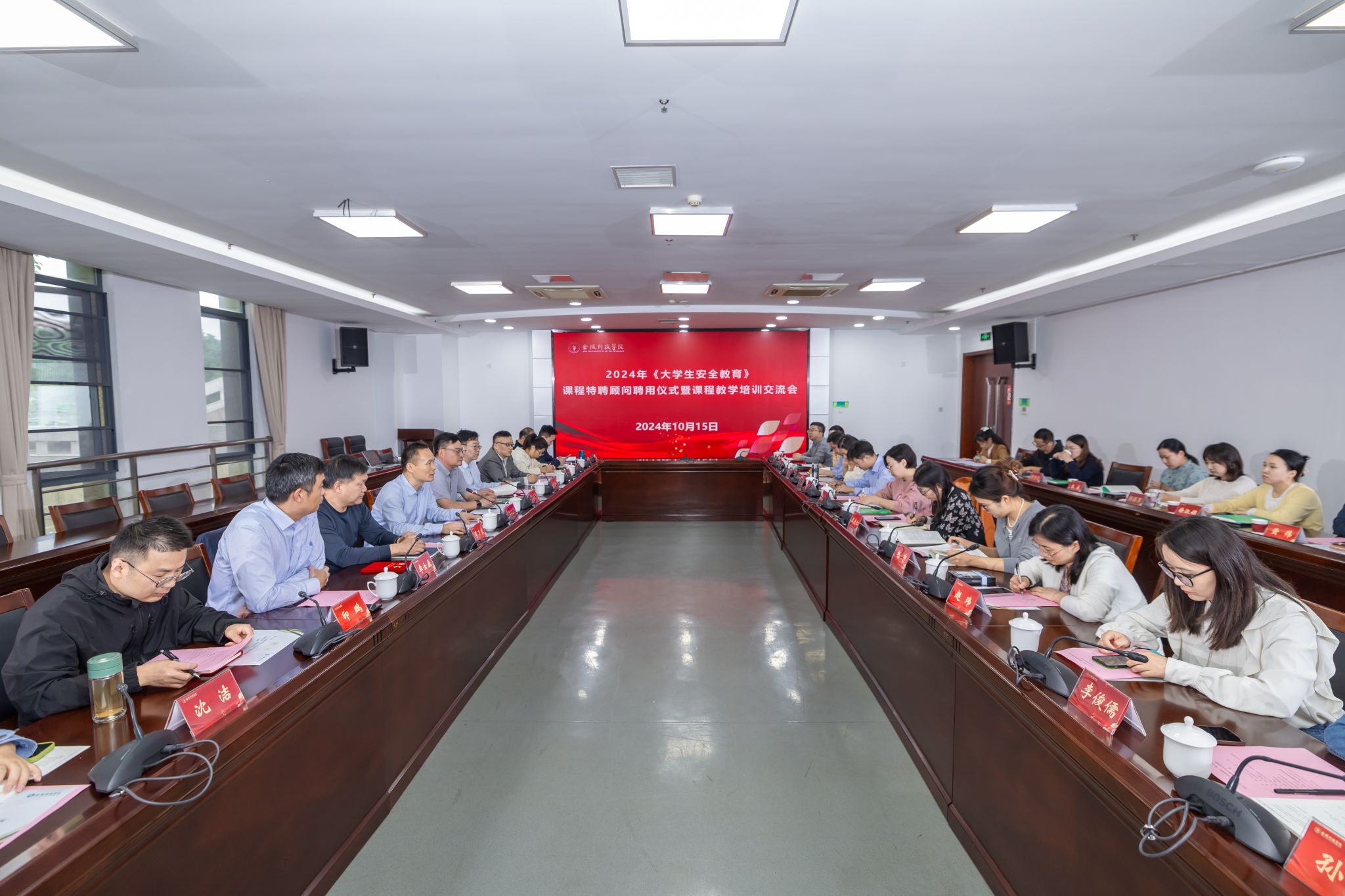 10月15日下午,sjb世俱杯2024年《大学生安全教育》课程特聘顾问聘用仪式暨课程教学培训交流会在图书馆第一报告厅举行。南京市公安局江宁分局政保大队一级警长罗卫东、中国药科大学保卫处处长范素文应邀参会,副校长王延光出席会议并讲话,2024年《大学生安全教育》课程全体任课教师参加会议。会议由保卫处处长骆德军主持。