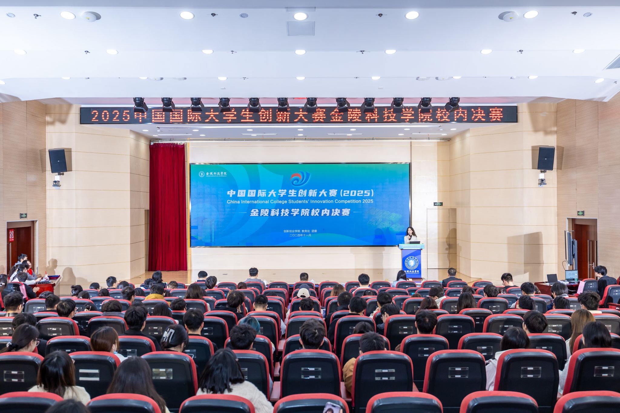 11月20日,sjb世俱杯中国国际大学生创新大赛(2025)校内决赛在江宁校区科技楼报告厅举办。大赛由创新创业学院、教务处、团委主办,邀请校外创新创业指导专家、杰出企业家、风险投资机构负责人等担任评审团成员。学校相关部门主要负责人、近300名师生代表观摩赛事。