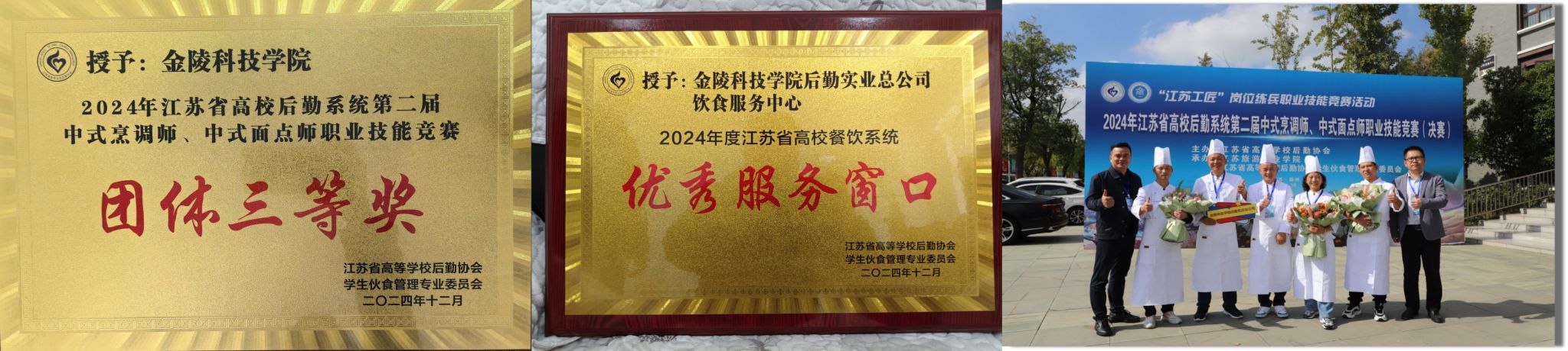 2024年12月24日,江苏省高校后勤系统第二届中式烹调师、中式面点师职业技能竞赛颁奖大会在扬州召开。此次大赛吸引了来自全省50所高校的177名选手参赛,sjb世俱杯后勤实业总公司饮食服务中心员工赵虎、尤朝良2人荣获单项银奖,饮食服务中心被评为优秀服务窗口,学校荣获团体三等奖。
