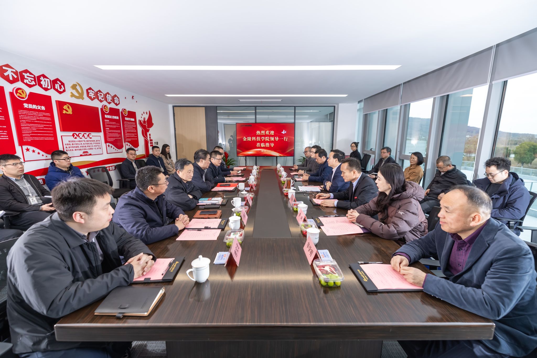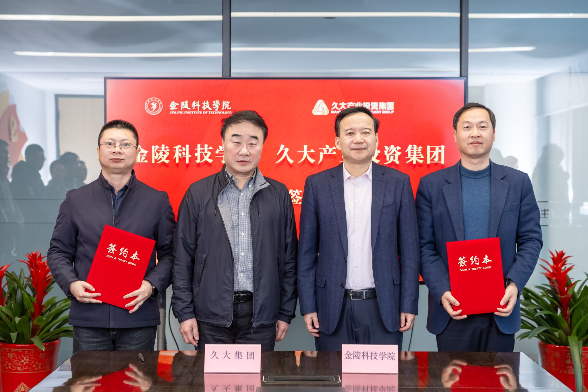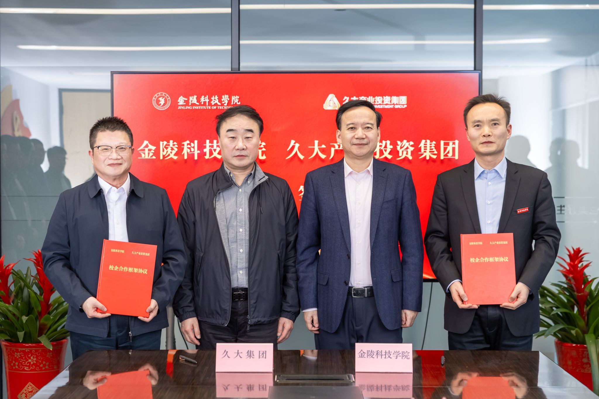 1月9日下午,校长刘永彪带队赴久大产业投资集团访企拓岗并进行校企合作签约仪式。久大产业投资集团董事长陶绪祥、南京市园林工程管理协会会长陆文祥、久大产业投资集团副董事长华晓春、久大建设总裁朱兴国、凯进生态总裁唐宝龙、柯图科技总经理张慧,江苏久智环境科技服务有限公司相关部门负责人,sjb世俱杯校长刘永彪,副校长王延光,校长办公室、合作与发展规划处、科技处、商学院、园艺园林学院等部门、学院负责人及教师代表参加。签约仪式在久大集团数字双碳产业园1号楼举行,会议由华晓春主持。