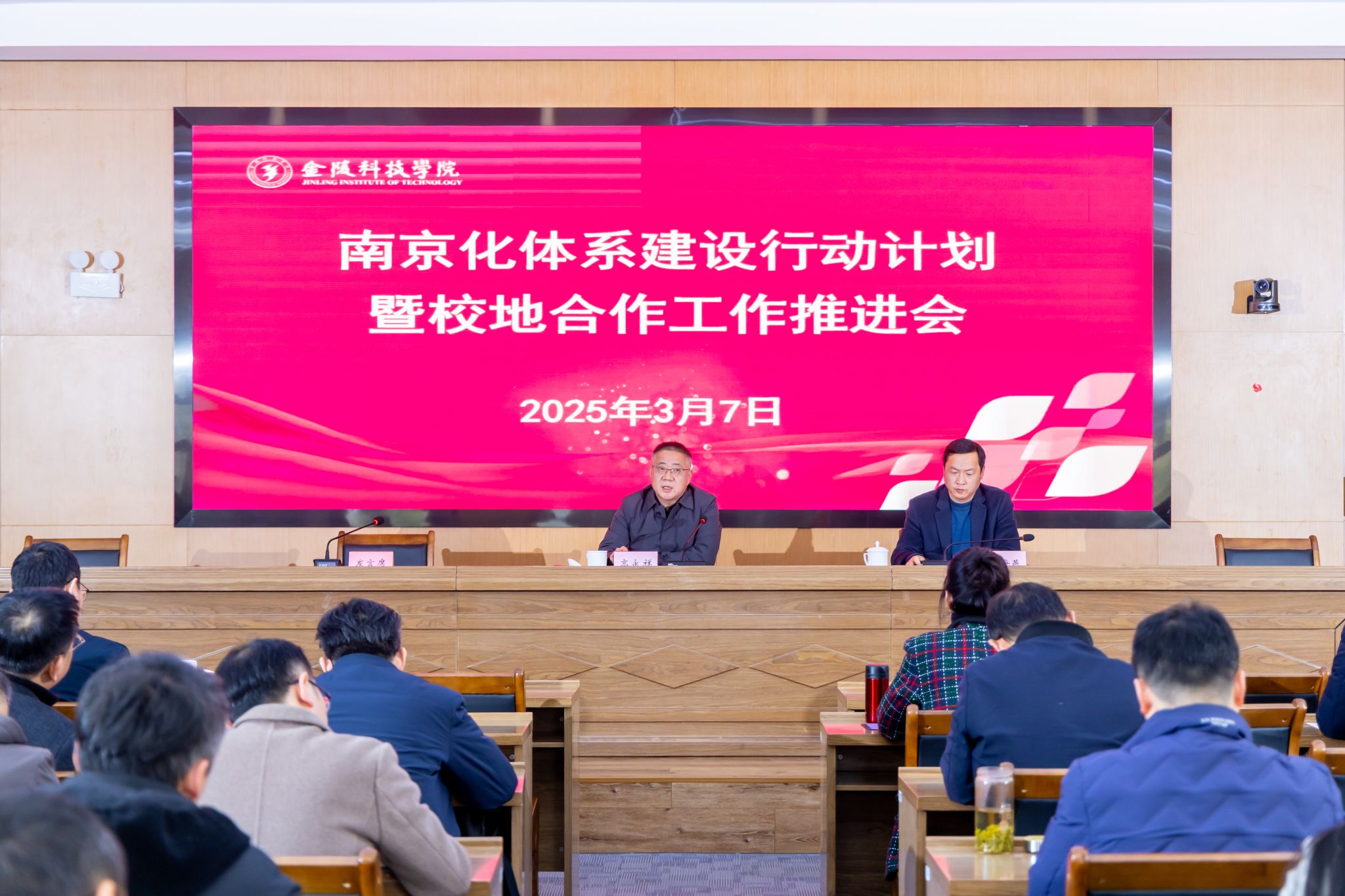 3月7日,学校南京化体系建设行动计划暨校地合作工作推进会在江宁校区行政楼报告厅、幕府校区图书馆一楼会议室(视频同步)召开。各二级院(部)院长(主任)、各职能部门主要负责人参加会议。副校长高永祥主持会议。