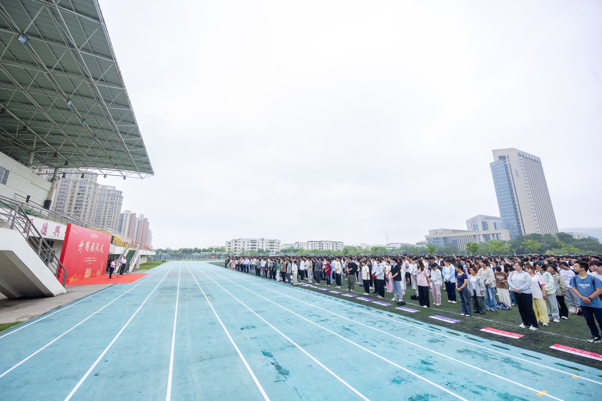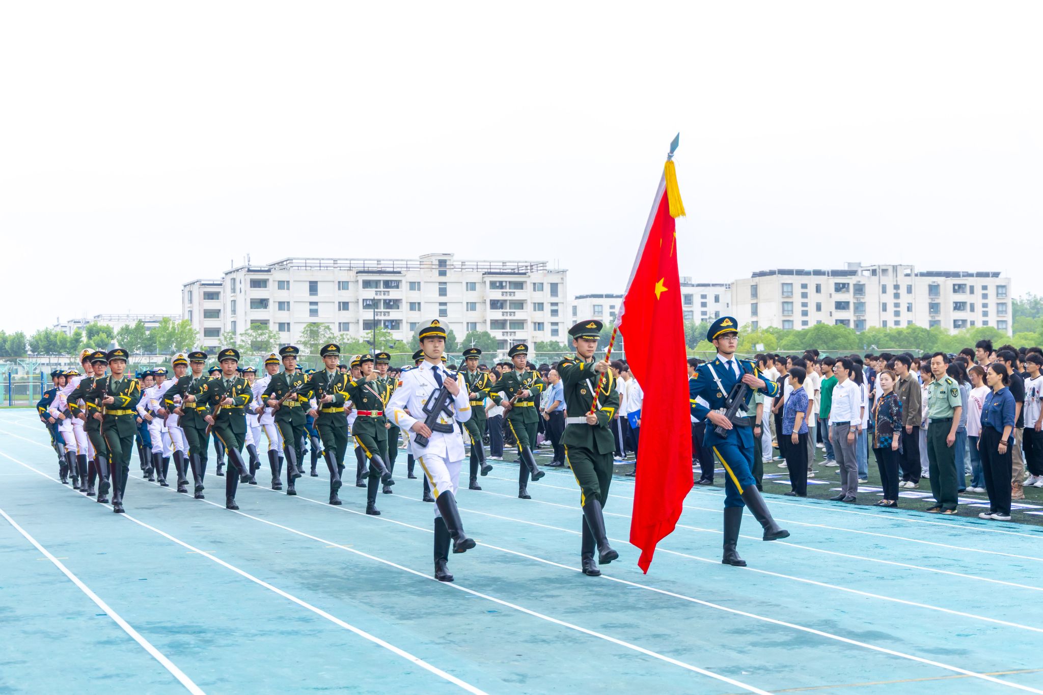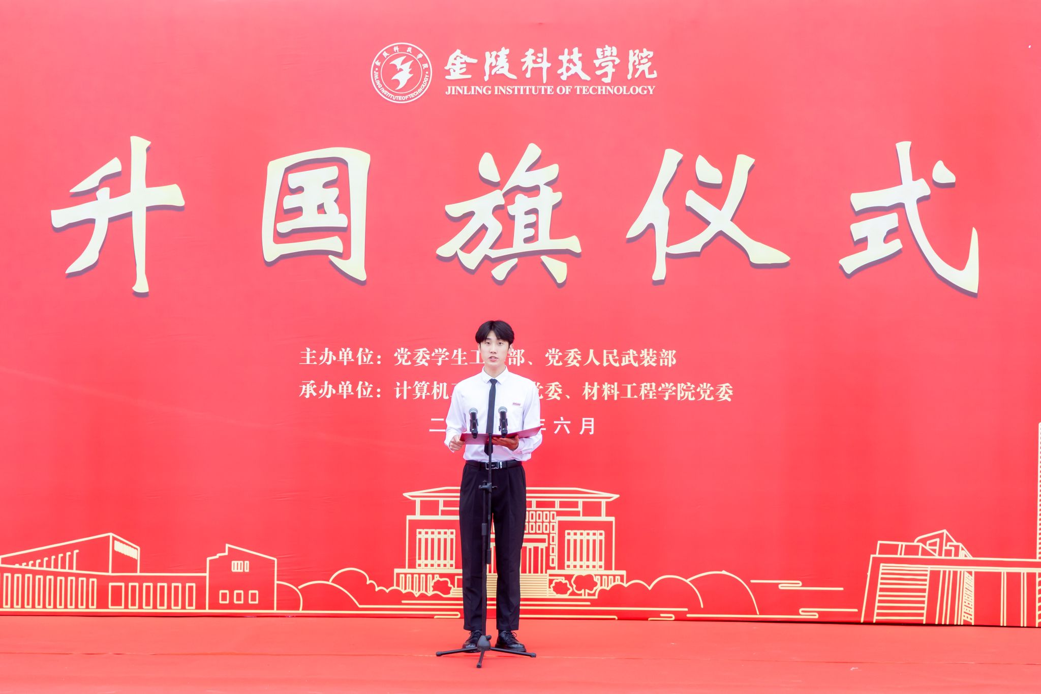 6月9日清晨,sjb世俱杯1800余名师生齐聚江宁校区北区田径场举行升国旗仪式,共上“国旗下的思政课”。校长季赛及党委学生工作部、党委人民武装部、计算机工程学院、材料工程学院师生参加仪式。升国旗仪式由党委学生工作部、党委人民武装部主办,计算机工程学院党委和材料工程学院党委承办。