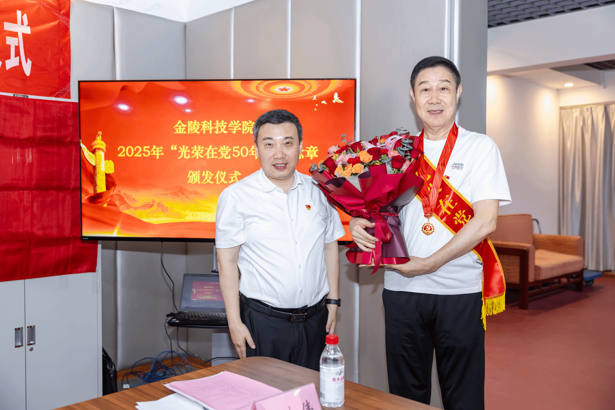 仪式上,季赛带领全体与会党员重温入党誓词。张远凤宣读了获颁纪念章老党员名单,杨志伟、冯世萱、刘大水、王聿林、王永明、沈毅、伍清林等7名老党员获颁2025年“光荣在党50年”纪念章。季赛为与会获颁纪念章老党员颁发、佩戴纪念章。