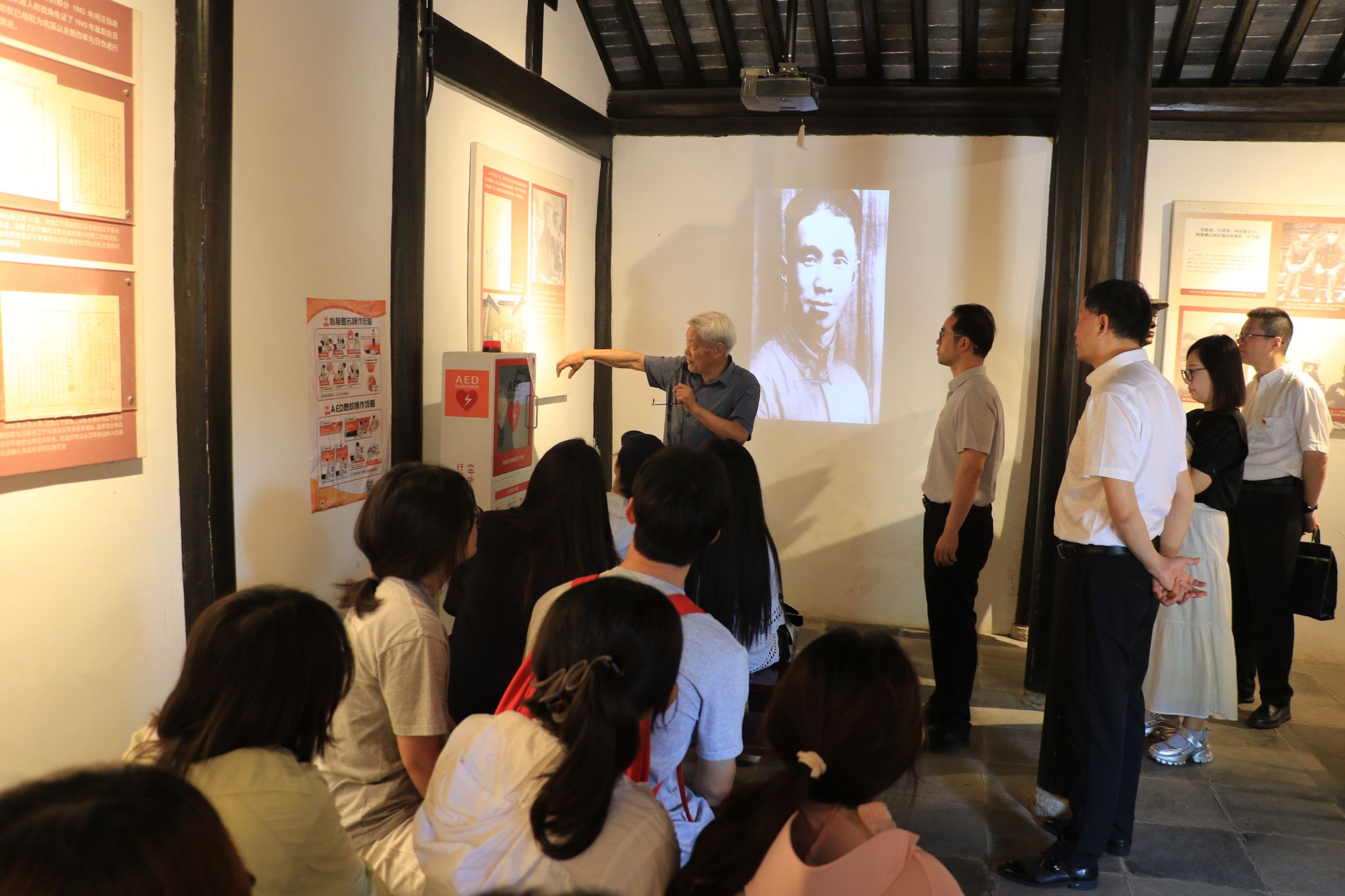 全体师生参观了“新四军在江宁”专题展,在横山村红色讲解员、耄耋老人刘维保的引导下,参观了横山新四军第一支队指挥部旧址。师生们聆听了横山革命故事和革命先烈的英勇事迹,了解了新四军在抗日战争中艰苦卓绝的斗争史,通过实物、图片、史料追忆当年抗战的峥嵘岁月。