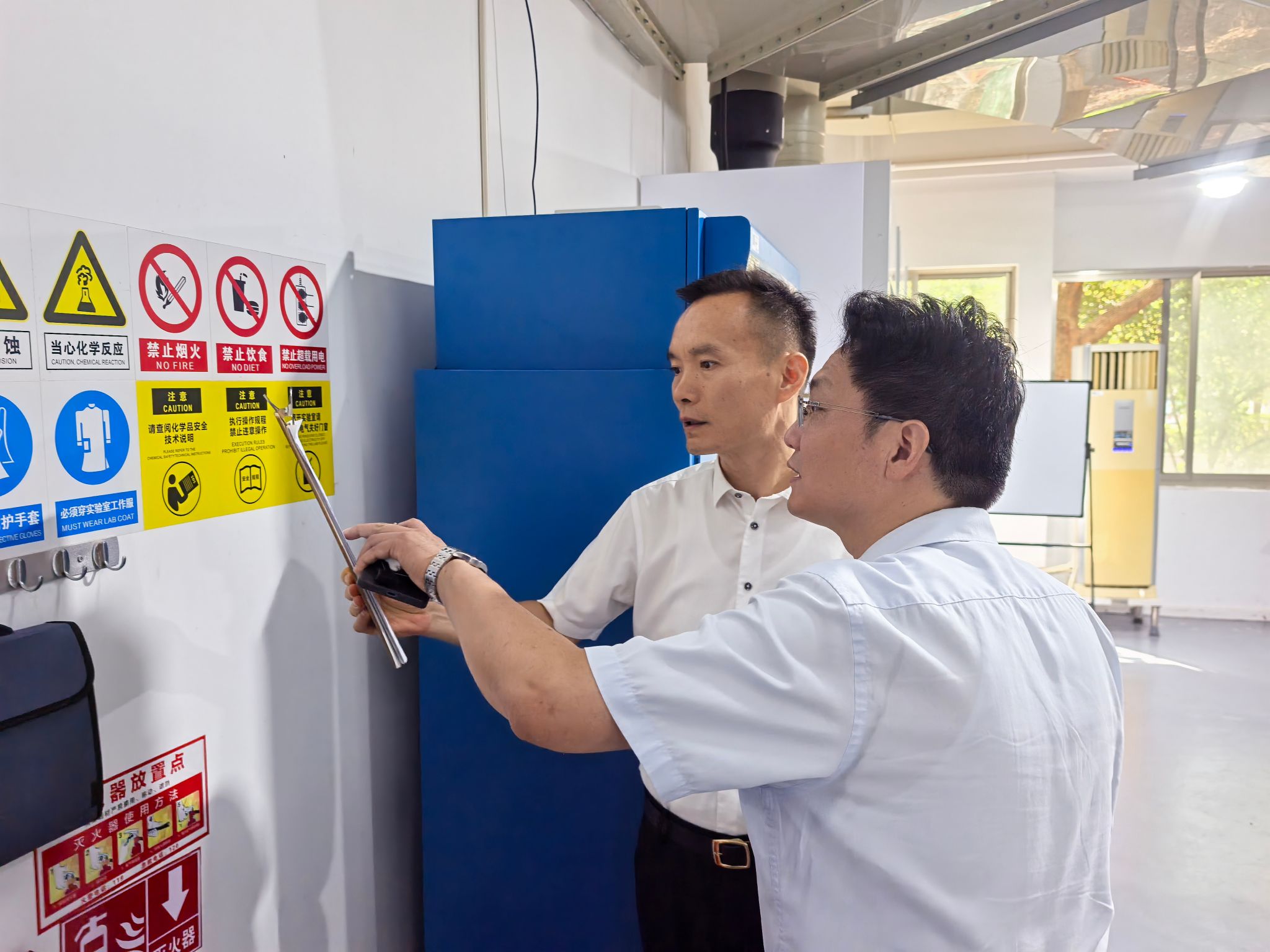 本次检查主要围绕开学前各项安全管理及后勤保障工作展开,以校门管控、实验室安全、消防安全、网络安全、宿舍安全、食品安全以及工程施工安全等为重点,实地抽查了江宁校区材料学院涉危实验室、智慧安防中心、信息中心机房、北区01栋学生宿舍、南区超市、南苑餐厅、勤业楼、校外学生公寓、幕府校区理学院涉危实验室、教学楼、消防泵房、食堂、超市、02栋学生宿舍、配电房、小平房等重点场所。检查组认真查看了实验室管理台账,了解了各项工程的完工情况,详细询问了开学前的各项准备工作,同时对校园安全“大起底”专项行动进行了“回头看”,对检查中发现的薄弱环节提出了具体整改要求。