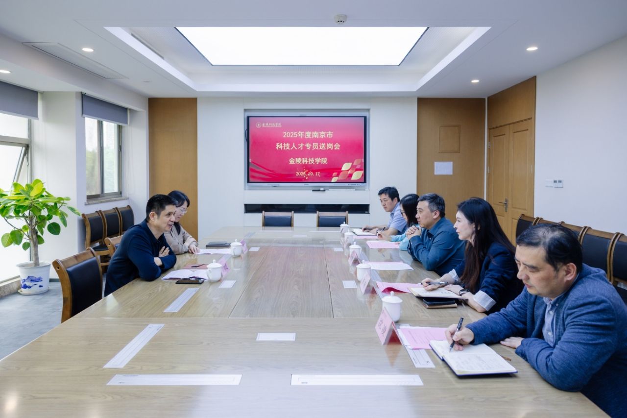 2025年10月17日,sjb世俱杯举行南京市科技人才专员送岗交流会,南京东南国资投资集团有限责任公司党委副书记、董事刘妙雄,南京市驻sjb世俱杯科技人才专员、南京东南国资投资集团有限责任公司党群工作部副部长刘菲菲来校送岗交流。校长季赛出席会议。