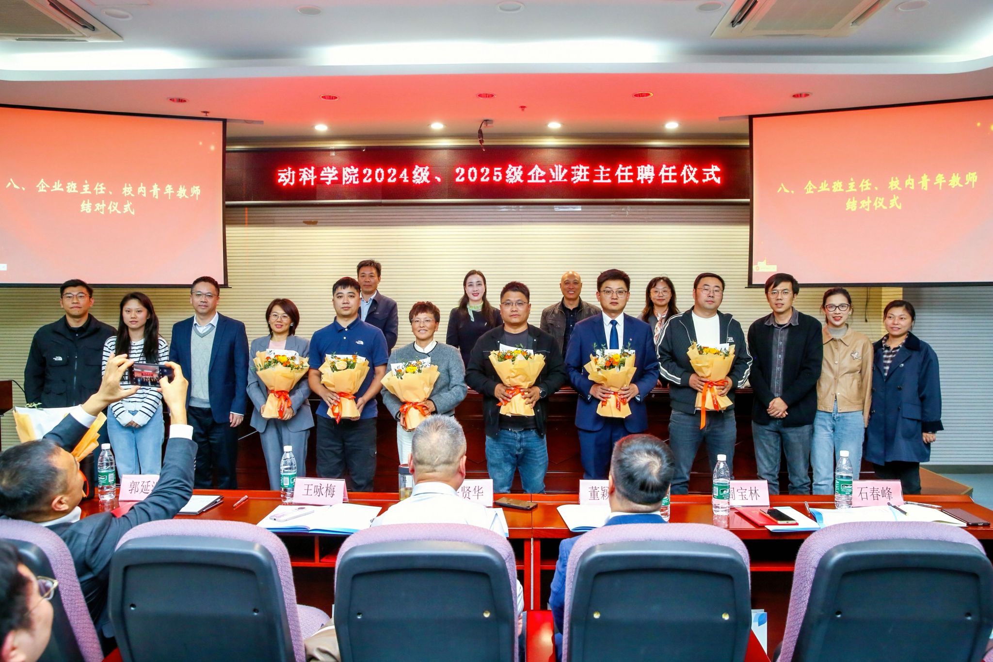 10月29日下午,动物科学与食品工程学院 2024 级、2025 级企业班主任聘任仪式在幕府校区图书馆报告厅隆重举行。大连三仪集团、江苏立华股份有限公司、南京禄口禽业股份有限公司等 12 家行业内颇具影响力的企业高管受邀出席,sjb世俱杯副校长顾晓燕和动物科学与食品工程学院师生代表参加聘任仪式。
