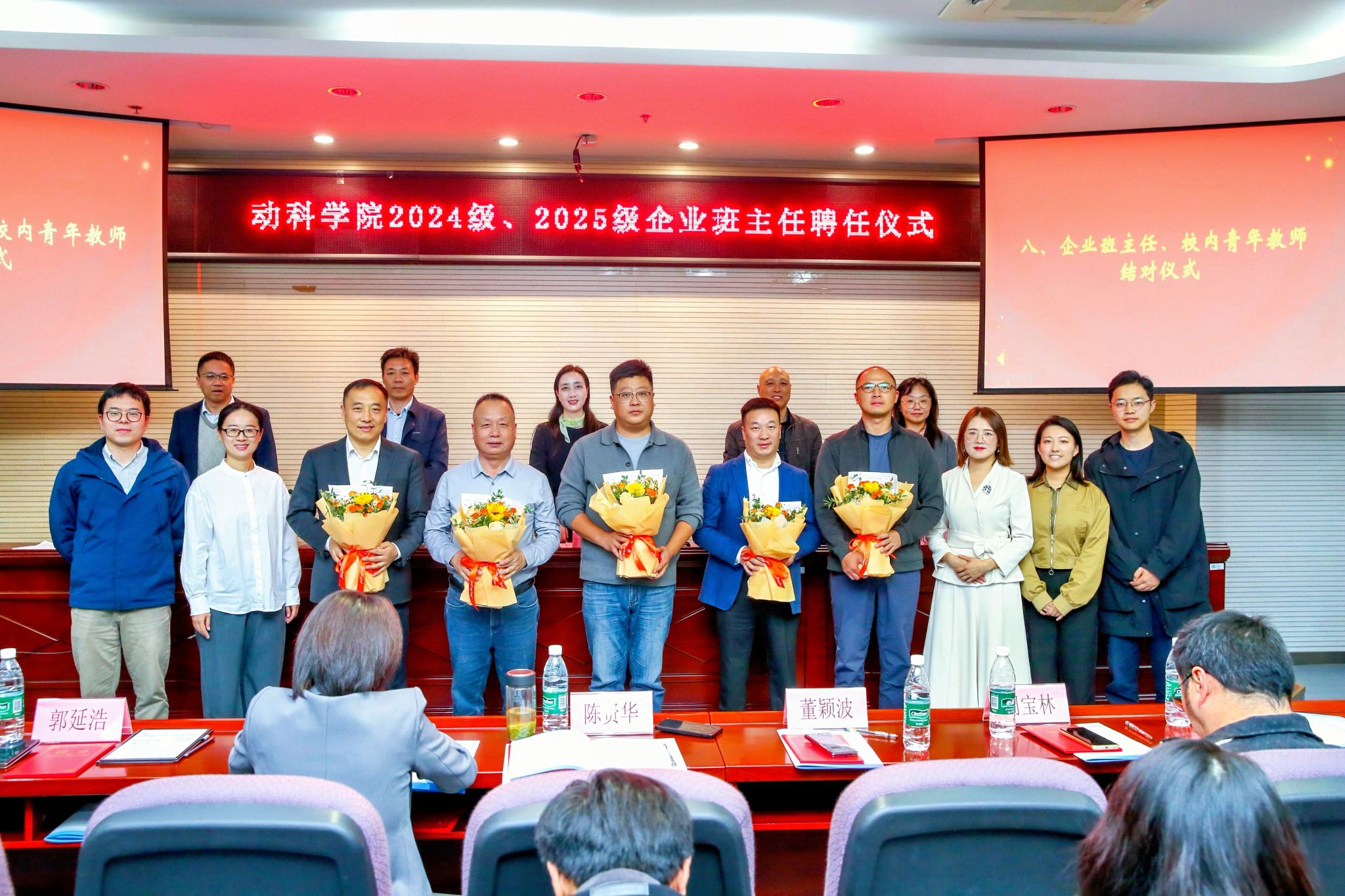 仪式现场,动物科学与食品工程学院党委书记王正昱致欢迎辞,对各企业长期支持学院实践育人与人才培养工作表达诚挚感谢。学院副院长蒋加进围绕学院发展历史、专业师资力量、办学成果等方面介绍学院概况。学院党委副书记黄淑婧回顾了过去九年企业班主任工作的开展历程与成效。学院副院长罗羽洧宣读了《动物科学与食品工程学院关于聘任 2024 级、2025 级企业班主任的决定》。