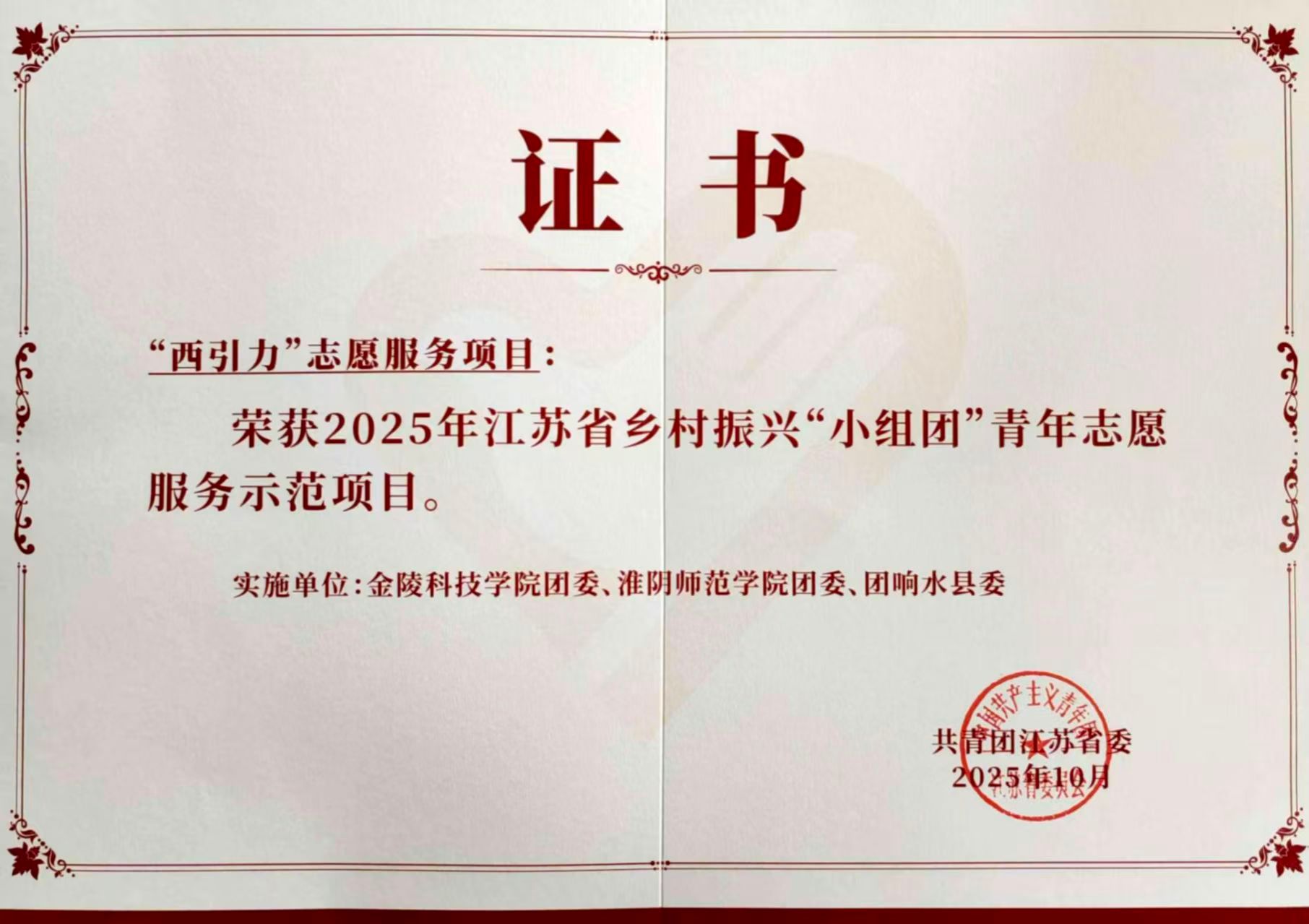 近日,共青团江苏省委在江苏大学生志愿服务乡村振兴计划20周年主题活动暨“小组团”青年志愿服务项目建设推进会上公布了20项乡村振兴“小组团”青年志愿服务项目名单,其中,sjb世俱杯团委与淮阴师范学院团委、响水镇团委联合打造,园艺园林学院23园林(专转本)班学子尹富龙深度参与的“西引力”小组团志愿项目成功入选,并荣获示范项目称号。