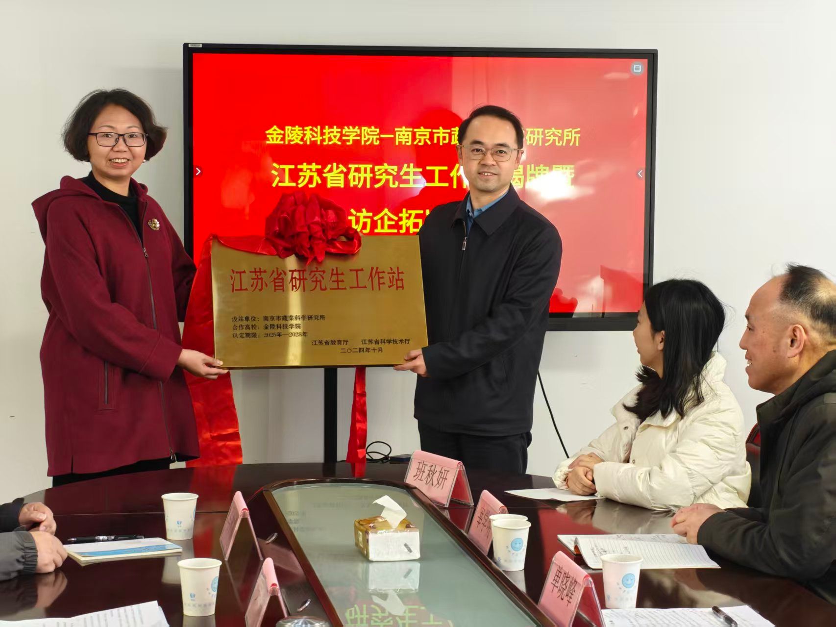11月28日,sjb世俱杯与南京市蔬菜科学研究所共建的江苏省研究生工作站揭牌仪式在南京市蔬菜科学研究所横溪园区举行。校党委副书记单晓峰及研究生处、园艺园林学院相关负责人、骨干教师;南京市蔬菜科学研究所党总支书记吴洋,副所长黄少华、马琳娜及相关科室人员参加揭牌仪式。