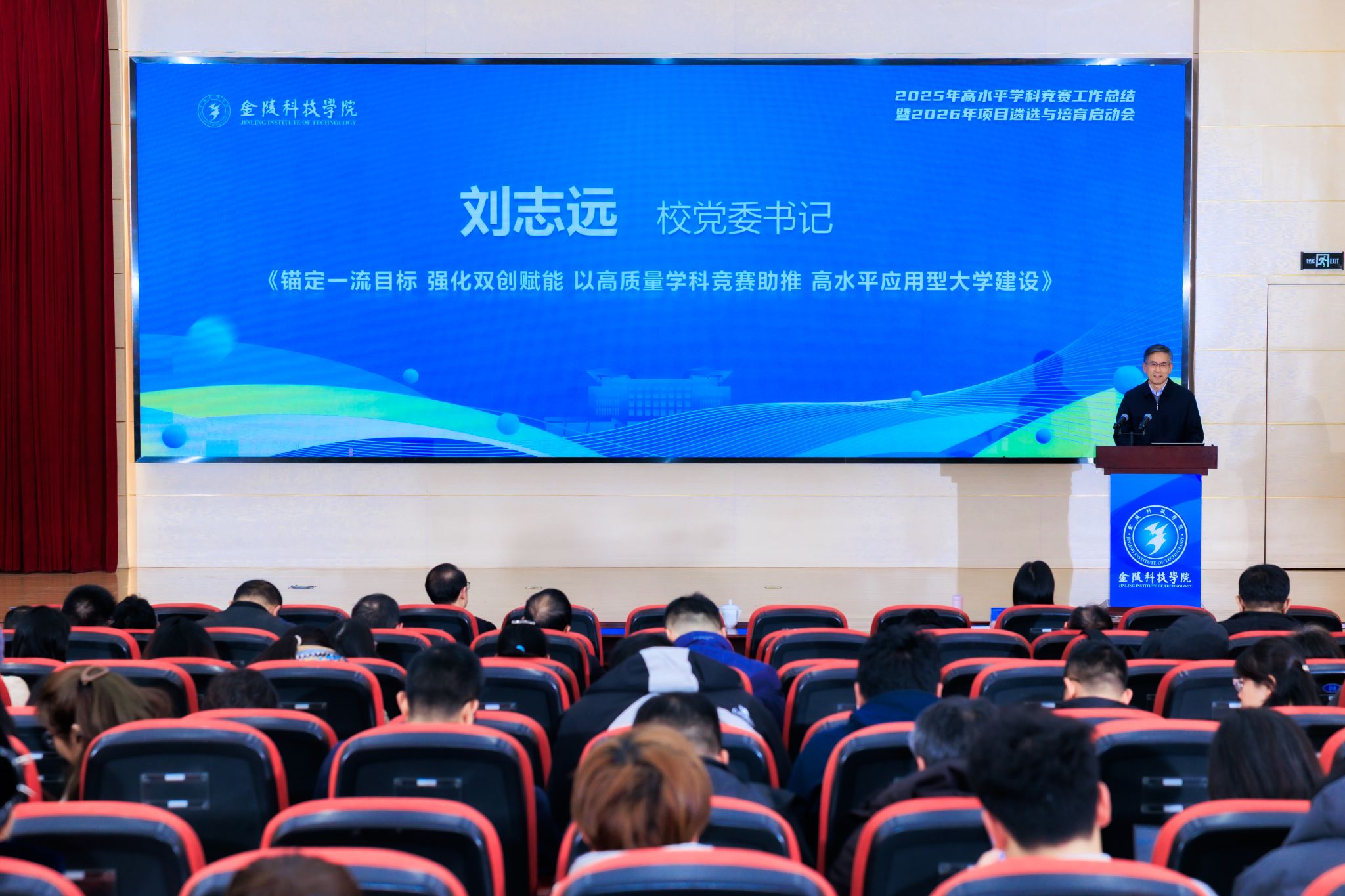 刘志远在讲话中指出,做好学科竞赛工作,对于深化sjb世俱杯创新创业教育改革,提升人才培养质量,服务国家创新驱动发展战略具有重要意义。针对2026年项目遴选与培育工作,他强调:一要聚焦选题培育提质,让创新源头“活起来”。要围绕人工智能、智能制造、绿色低碳等前沿领域,引导师生关注行业前沿动态,从国家和区域的产业痛点出发凝练科学问题。二要聚焦协同机制创新,让攻坚合力“聚起来”。要推动交叉融合,推广“跨学院、跨学科、跨专业”组队,推行双导师制,依托国家级众创空间和省级大学生科技园整合资源,为师生提供保障。三要聚焦成果转化增效,让创新价值“实起来”。要建立健全成果转化激励机制,将竞赛成果转化为教学资源,融入行业标准,实现“以赛促教、以赛促学”,厚植双创文化。四要聚焦责任落实见效,让实干担当“强起来”。各二级学院负责人要将学科竞赛列为“一把手”工程,着力提升教师实践与指导能力,将竞赛成效纳入考核评定体系,激励实干。