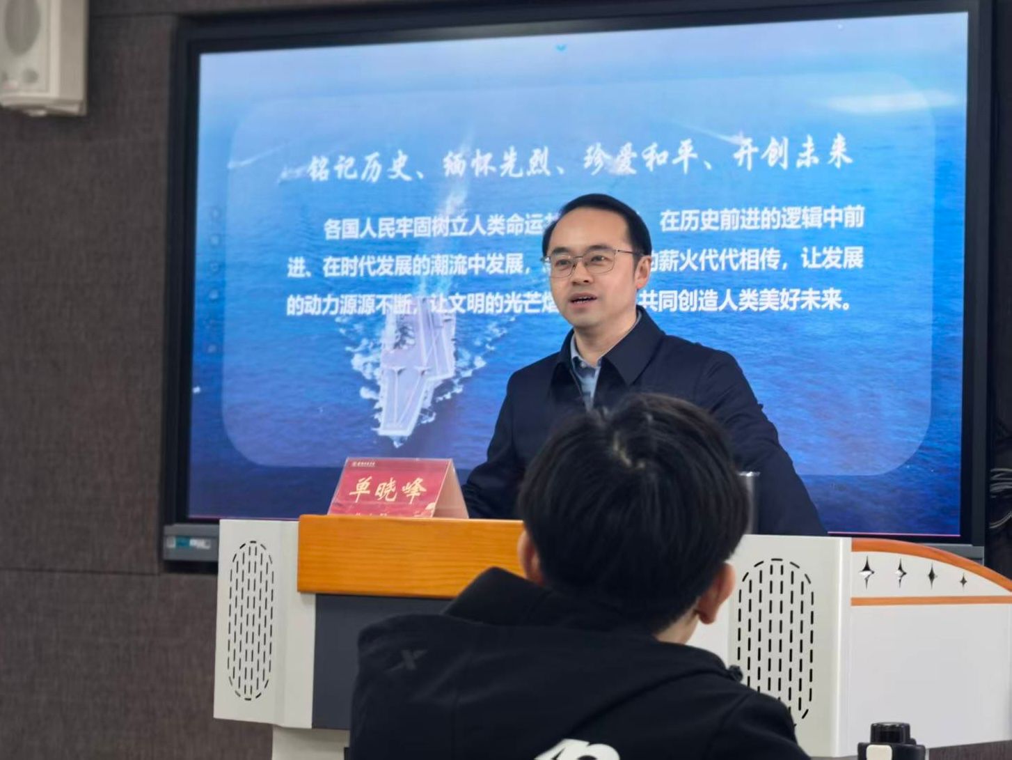 12月5日下午,校党委副书记单晓峰深入机电工程学院课堂,以“弘扬伟大抗战精神,砥砺奋进新征程”为主题,为青年学子讲授了一堂深刻而生动的形势与政策课。课堂气氛热烈、互动频繁,在历史与现实的交汇中,引领学生感悟伟大精神力量,明确时代担当。