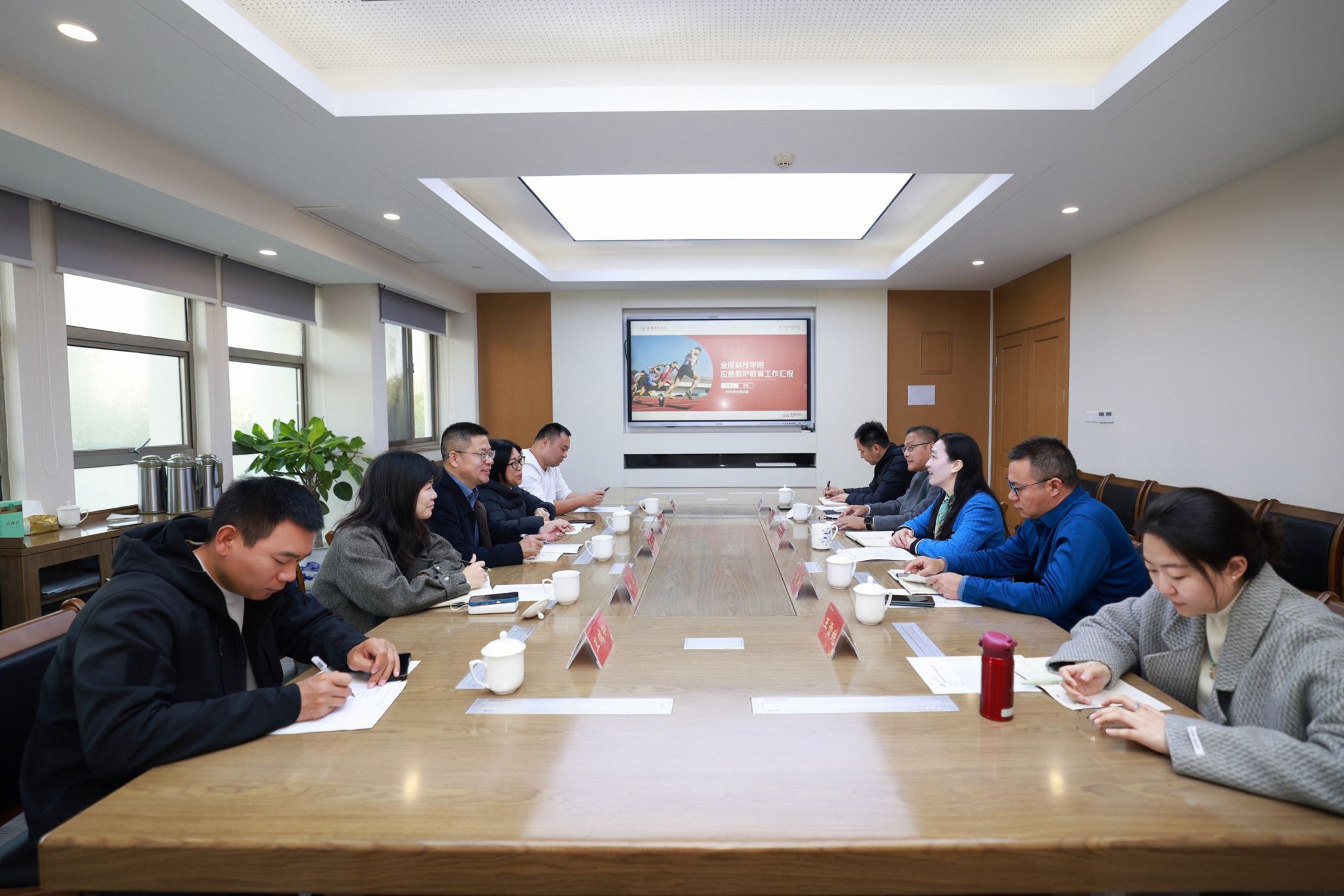 双方围绕办学模式创新、资源支持保障、体育教学发展、急救教育推广等议题展开深入交流。体育部相关负责人介绍了体育教学中的特色举措、课程思政建设成果、竞赛育人亮点,以及急救教育在师资培训、持证覆盖、实战化培训体系构建等方面的实践经验。浙江旅游职业学院相关人员分享了专业课程中融入急救教育的特色做法、技能比赛创新及社会服务拓展等经验。