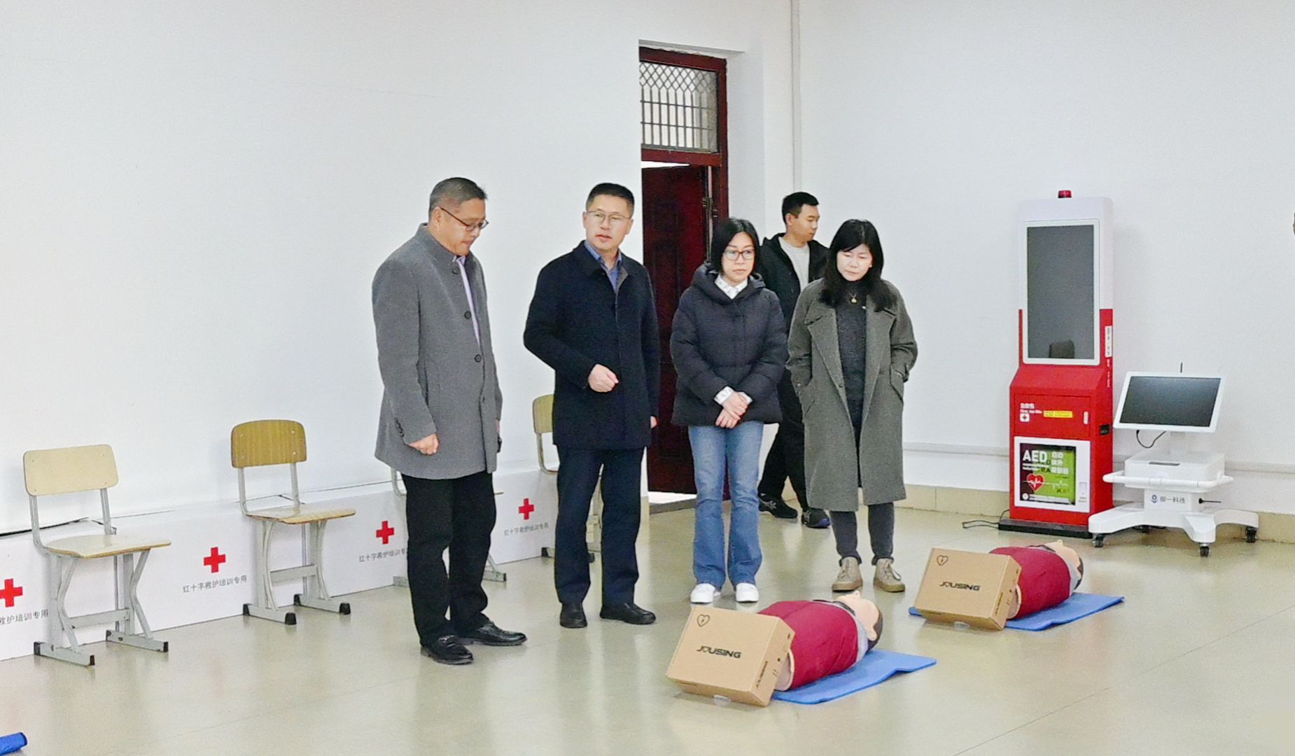 会后,韩永良一行实地参观了sjb世俱杯体育场馆及急救教学设施,直观感受了sjb世俱杯在体育教学与急救教育方面的建设成果。