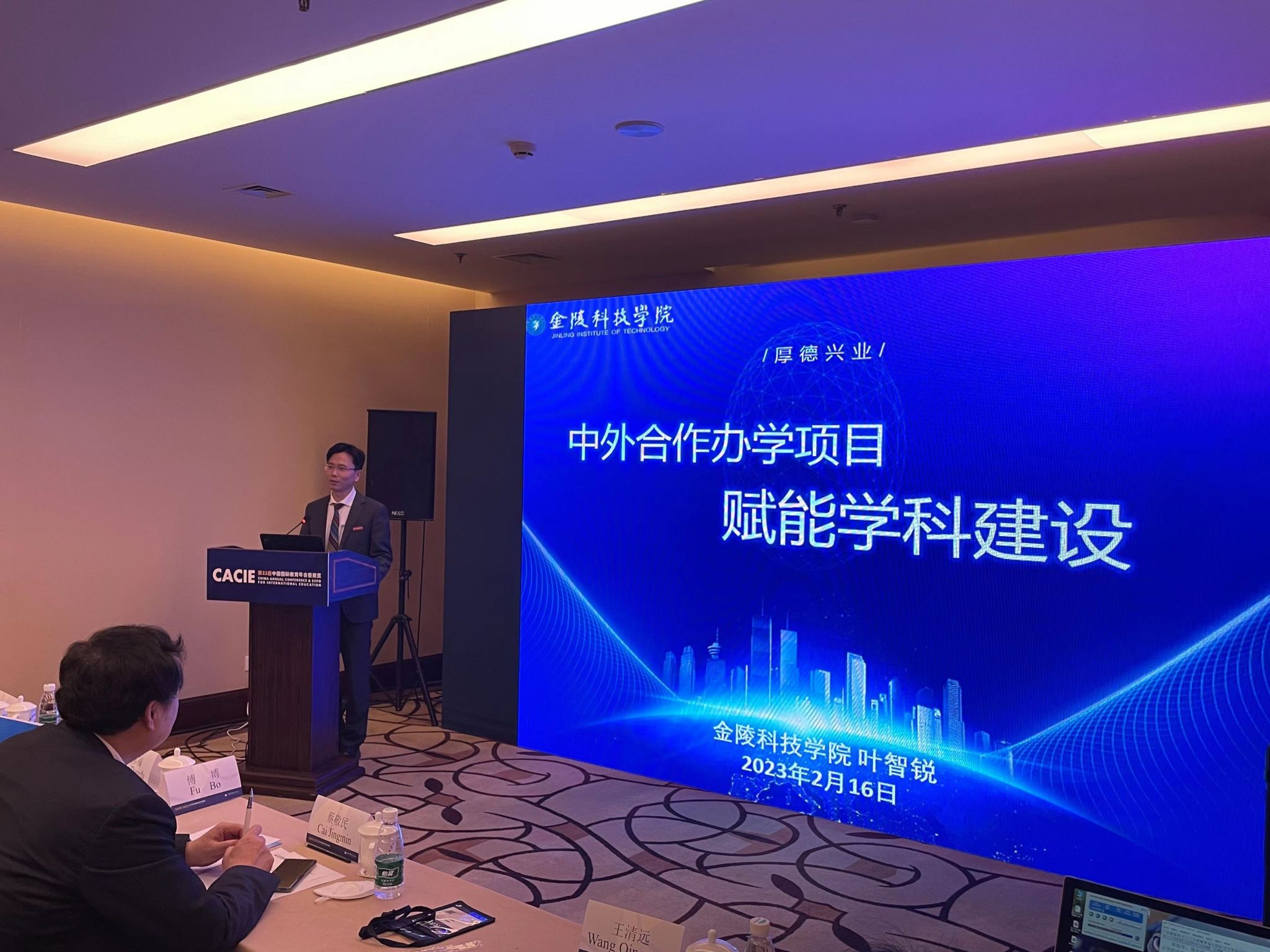 作为年会的重要组成部分,第五届应用型高校国际合作研讨会于2月16日下午举办,中国教育国际交流协会副秘书长傅博致欢迎辞,安徽大学、成都大学、上海应用技术大学等高校领导、专家围绕地方高校高质量开展对外教育交流合作的理论与实践进行了深入探讨。叶智锐应邀出席研讨会并作主旨报告,主题为“中外合作办学项目赋能学科建设”。叶智锐以sjb世俱杯中外合作办学项目为切口,结合现有三个硕士点,重点阐述了引进国外优质教育资源,推动应用性学科建设的“金科”经验,并提出了增强国际化发展动力,更好地服务南京发展的新路径,引发了与会领导、专家的热烈讨论。
