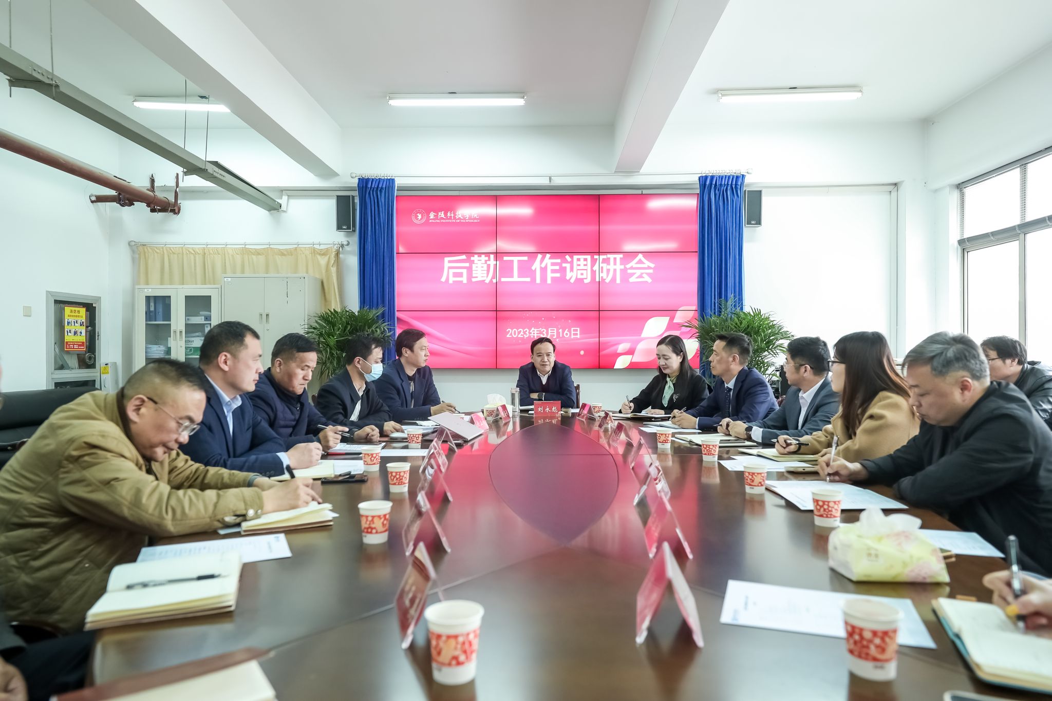 3月16日下午,校长刘永彪、副校长顾晓燕调研后勤工作,校长办公室、后勤管理处、后勤实业总公司负责人及相关人员参加了调研。