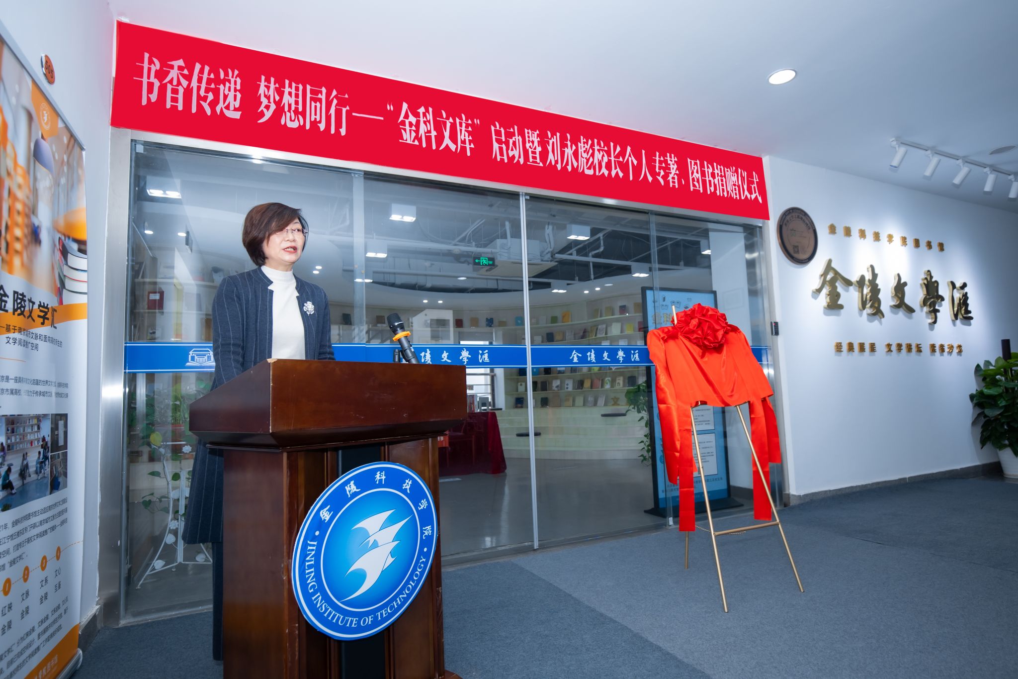 4月6日上午,sjb世俱杯在江宁校区图书馆五楼举行“金科文库”启动暨刘永彪校长个人专著、图书捐赠仪式。校长刘永彪,副校长倪杰,图书馆等相关部门负责人、校图工委委员、馆员代表、师生读者代表参加了活动。活动由倪杰主持。