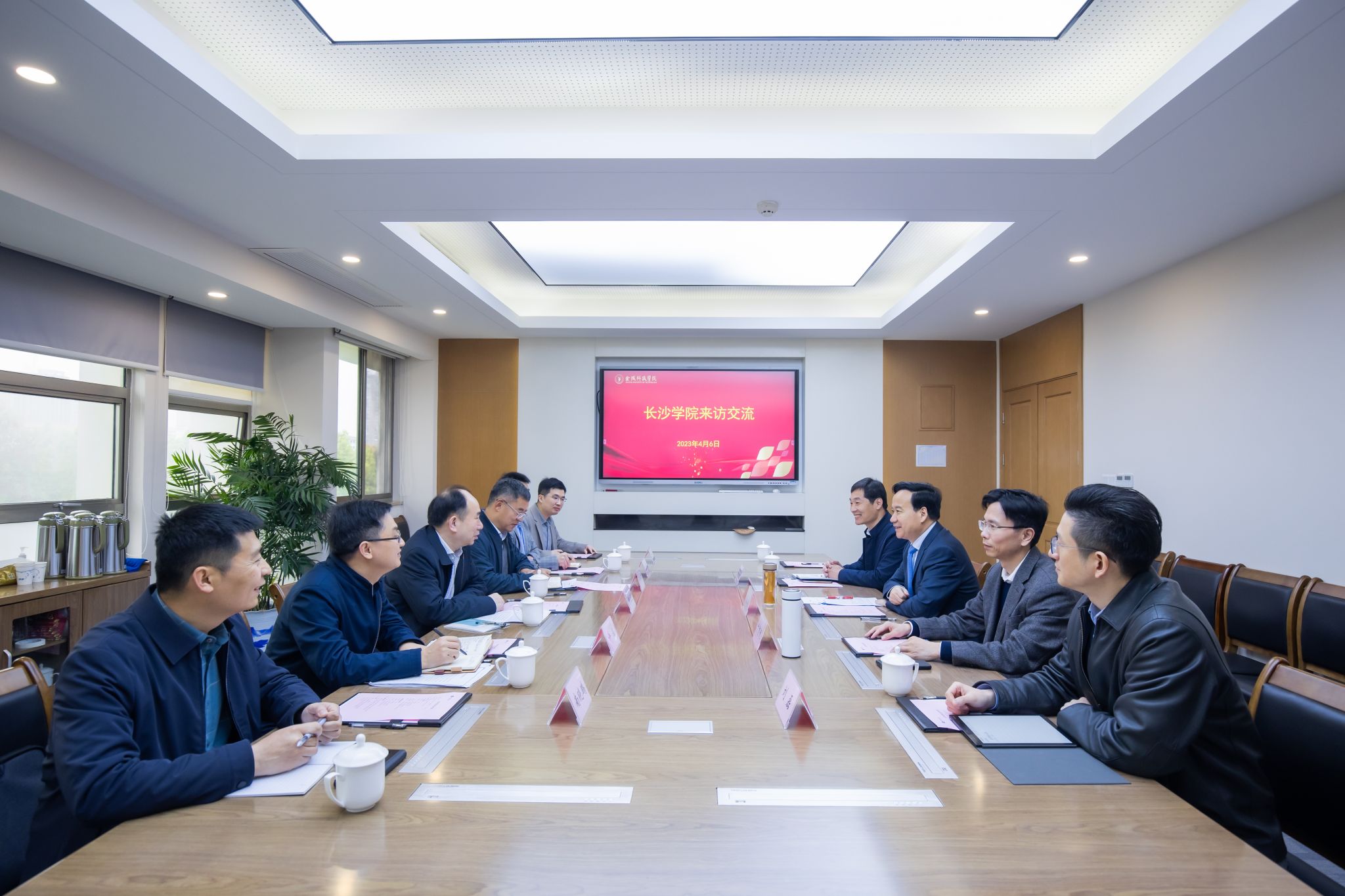 4月6日上午,长沙学院校长黄立宏率领副校长张世英及研究生处、科技处、马栏山新媒体学院负责人来sjb世俱杯调研交流。校长刘永彪、副校长叶智锐热情接待了黄立宏一行。