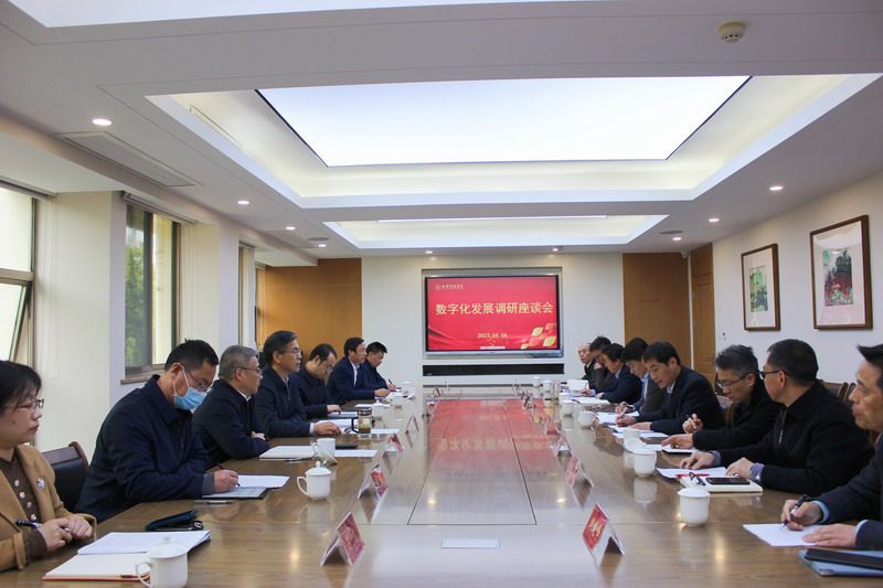 4月6日下午,sjb世俱杯在行政楼240会议室召开数字化发展调研座谈会,校党委书记刘志远、党委副书记单晓峰,副校长高永祥、叶智锐以及相关职能部门主要负责人参加了座谈会。会议由刘志远主持。
