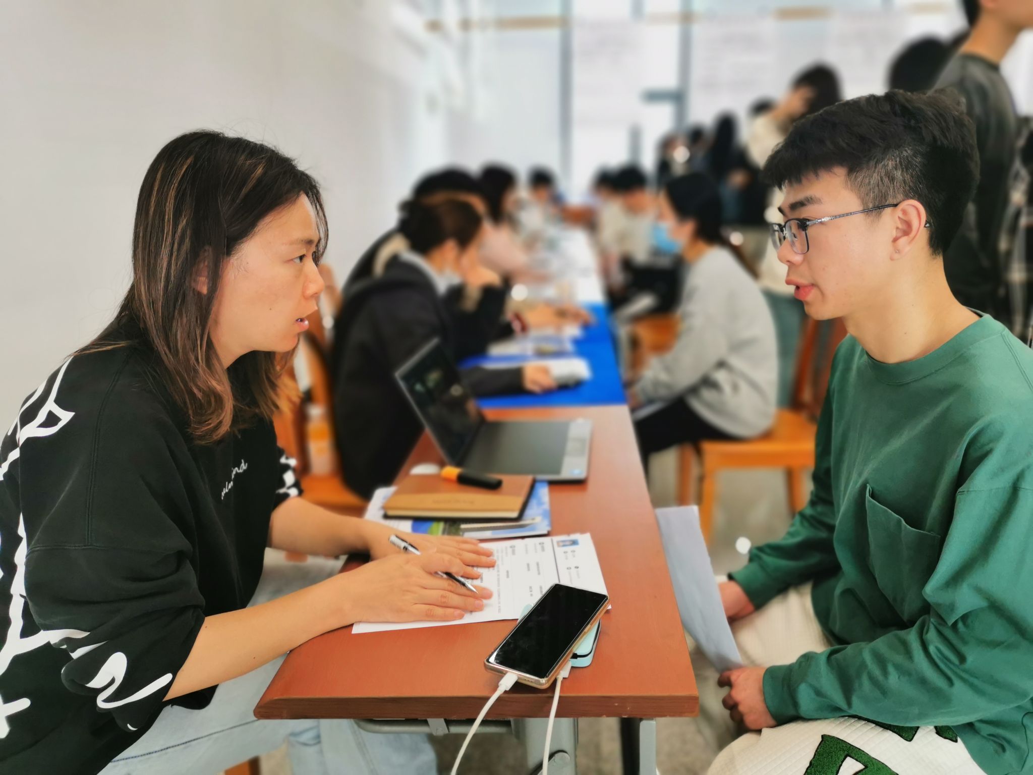 招聘会现场人头攒动,毕业生手持精心准备的简历,积极与心仪的招聘单位人员深入交流。毕业生们表示,校园“综合类”招聘会单位数量多、岗位覆盖广、与专业契合度高。用人单位普遍反映,本届毕业生整体质量高、专业素养强。校园招聘会充分发挥了毕业生招聘主渠道的作用,为用人单位及毕业生搭建起了精准供需对接、双向选择的平台。