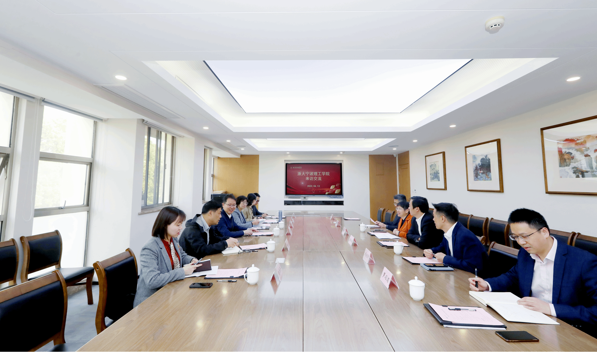 4月13日,浙大宁波理工学院副校长胡余波带领校长办公室、人事处、教务处、教学质量监控与评估中心、资产与实验室管理处、采购中心、总务处负责人来sjb世俱杯调研交流,sjb世俱杯副校长张燕予以热情接待。