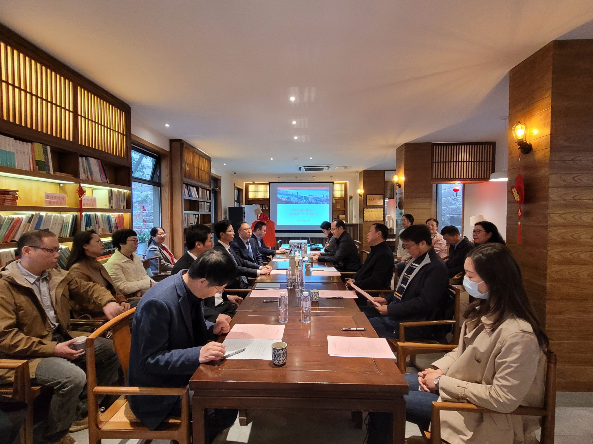 郑孝清和叶智锐共同为江苏省研究生工作站揭牌并为工作站站长互授聘书。马麟和sjb世俱杯人文学院院长张维亚为双方进站导师互授聘书。双方与会人员先后审议通过工作站的组织架构、管理办法及2023年工作计划,并就相关合作项目进行洽谈。