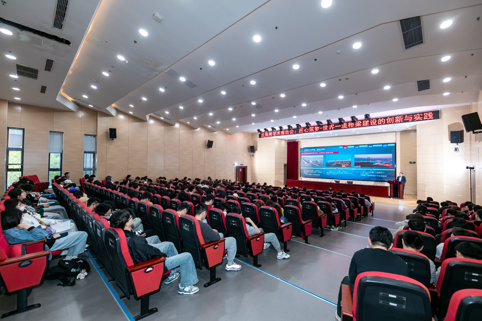 武焕陵从“中国长大桥梁·崛起之路”“南京跨江桥梁·创新引领”“南京跨江桥梁·管理实践”“中国交通强国·未来展望”四个篇章,介绍了我国由桥梁大国到桥梁强国的奋斗和崛起之路,结合南京市30余年来在世界级越江桥梁工程的创新引领和管理实践,全方位地介绍了南京长江二桥、三桥、四桥、五桥、仙新路桥等多座世界级桥梁工程在设计、技术、施工、装备、材料等五个层面的创新成果,以及取得的世界级和国家级奖项荣誉。