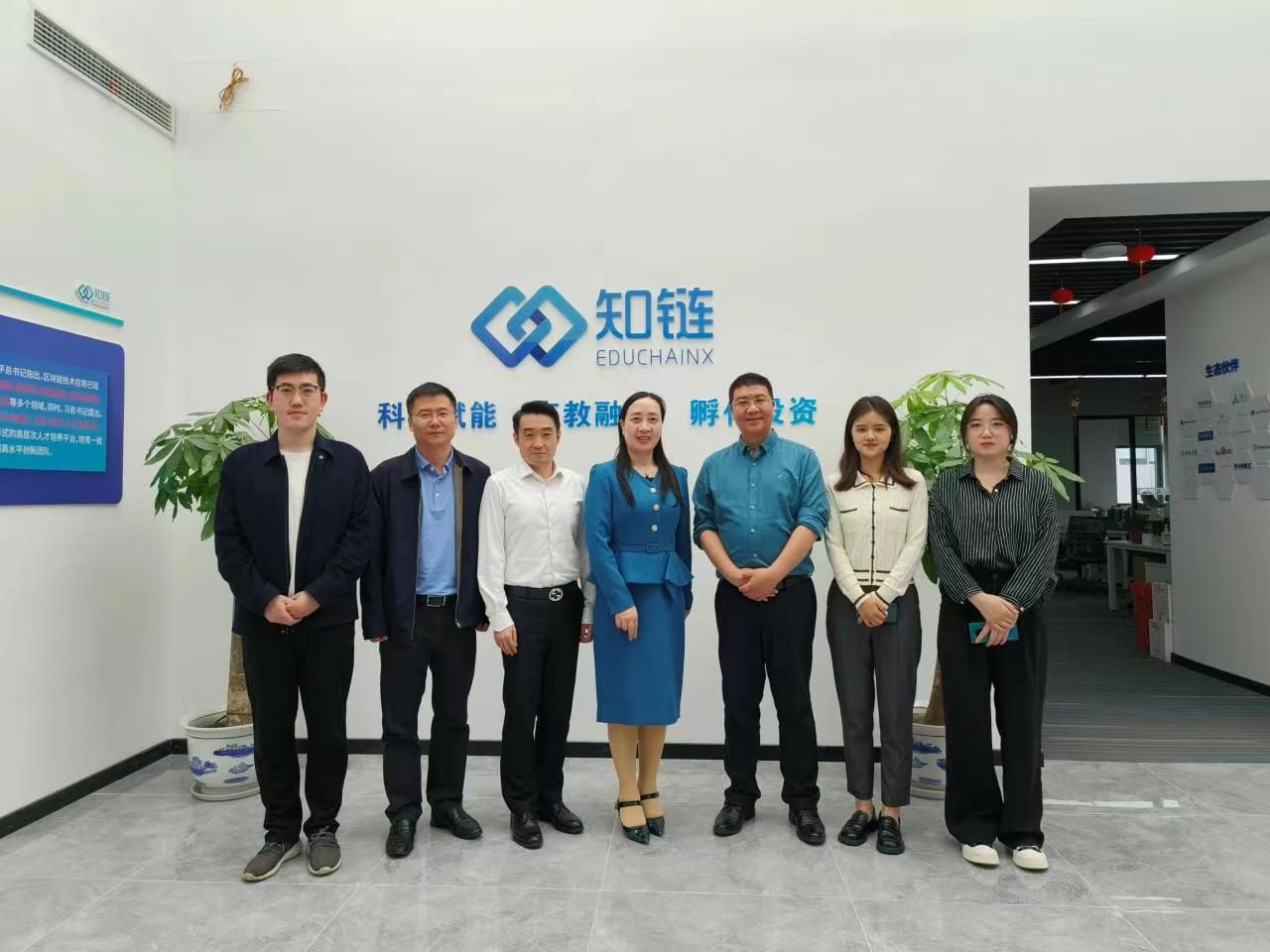在江苏知链科技有限公司,总经理施亚东对顾晓燕一行的到来表示欢迎,并对知链科技的基本情况进行了介绍,他从大数据与金融科技视角阐述了专业方向的人才培养、师资团人、课程开发、专业实践教学、实习实践及三方共建合作的企业经验,期盼通过长期务实的校企合作关系,共同探索数字经济时代新文科人才培养机制的创新路径,提升学生实践能力。