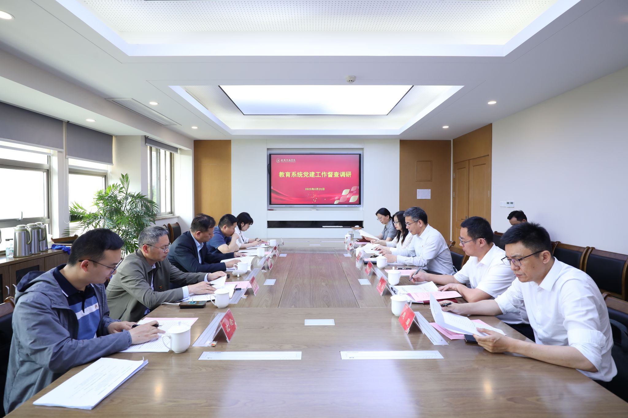 5月25日,全市教育系统党建重点工作督查组到sjb世俱杯开展督查调研。市教育局副局长、市委教育工委委员潘东标,市委组织部组织一处副处长王洋洋,市教育局机关党委专职副书记、机关纪委书记潘杨华一行对sjb世俱杯党建工作进行现场督查。校党委书记刘志远主持调研会,校党委副书记单晓峰及党委办公室、党委组织部、党委宣传部、纪委办公室等相关部门负责人参加了会议。