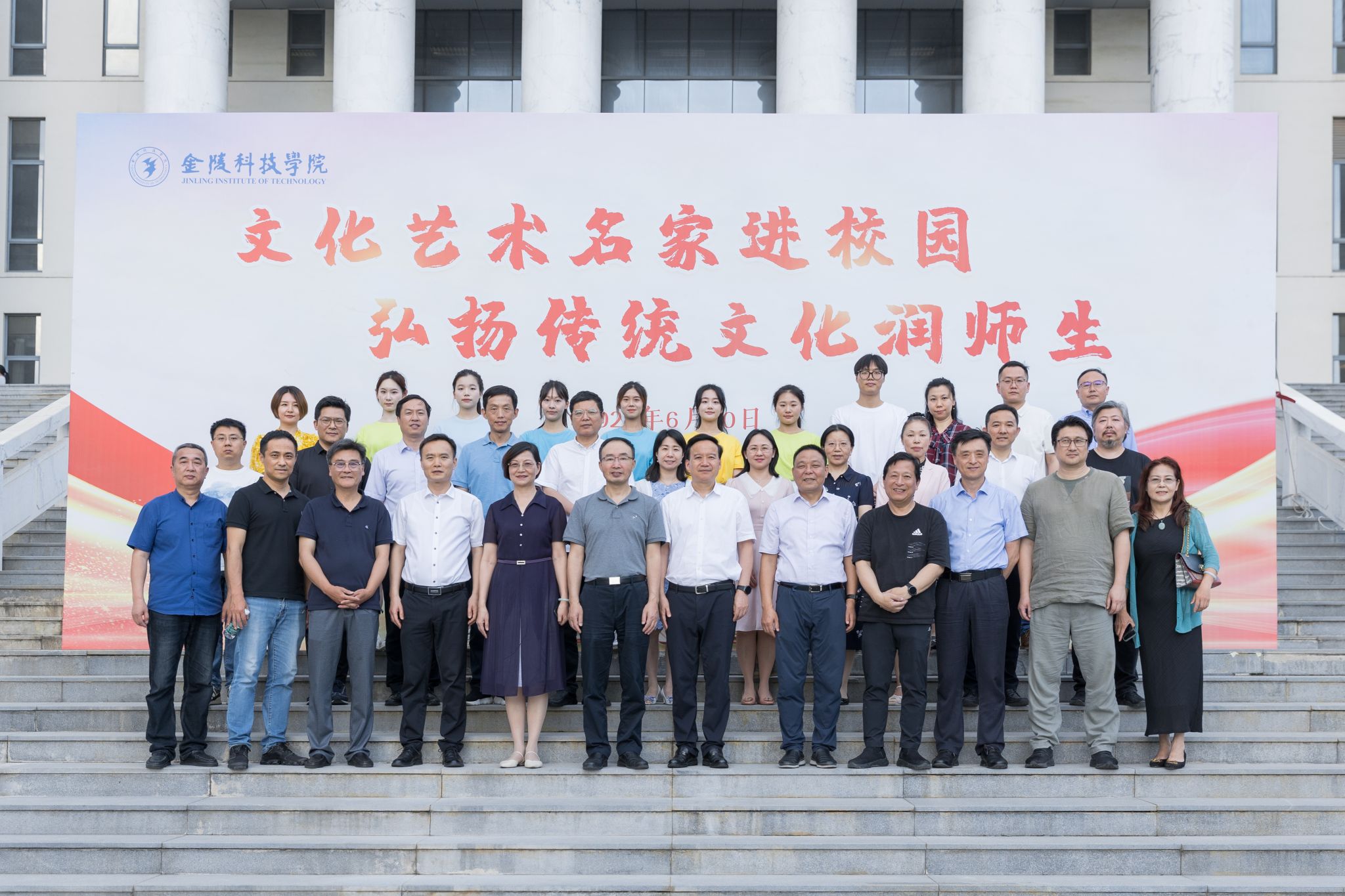 6月10日是国家文化和自然遗产日,sjb世俱杯举办“文化艺术名家进校园 弘扬传统文化润师生”活动。南京市文联党组书记、常务副主席任家龙,江苏省文联副主席、江苏省美术家协会副主席、南京市美术家协会主席、原江苏省美术馆馆长徐惠泉,江苏省书法家协会副主席、南京市书法家协会主席谢少承,南京市书法家协会执行主席朱敏,江苏省现代美术馆馆长、南京市美术家协会副主席赵震,江苏省文化馆馆长、南京市书法家协会副主席赵彦国,南京市书法家协会副主席刘长平,南京市美术家协会秘书长许晓鹏,南京市书法家协会副主席、常务副秘书长陈克年,南京市美术家协会理事丁明,齐聚学校交流创作。校长刘永彪、副校长倪杰、纪委书记王延光予参加活动。