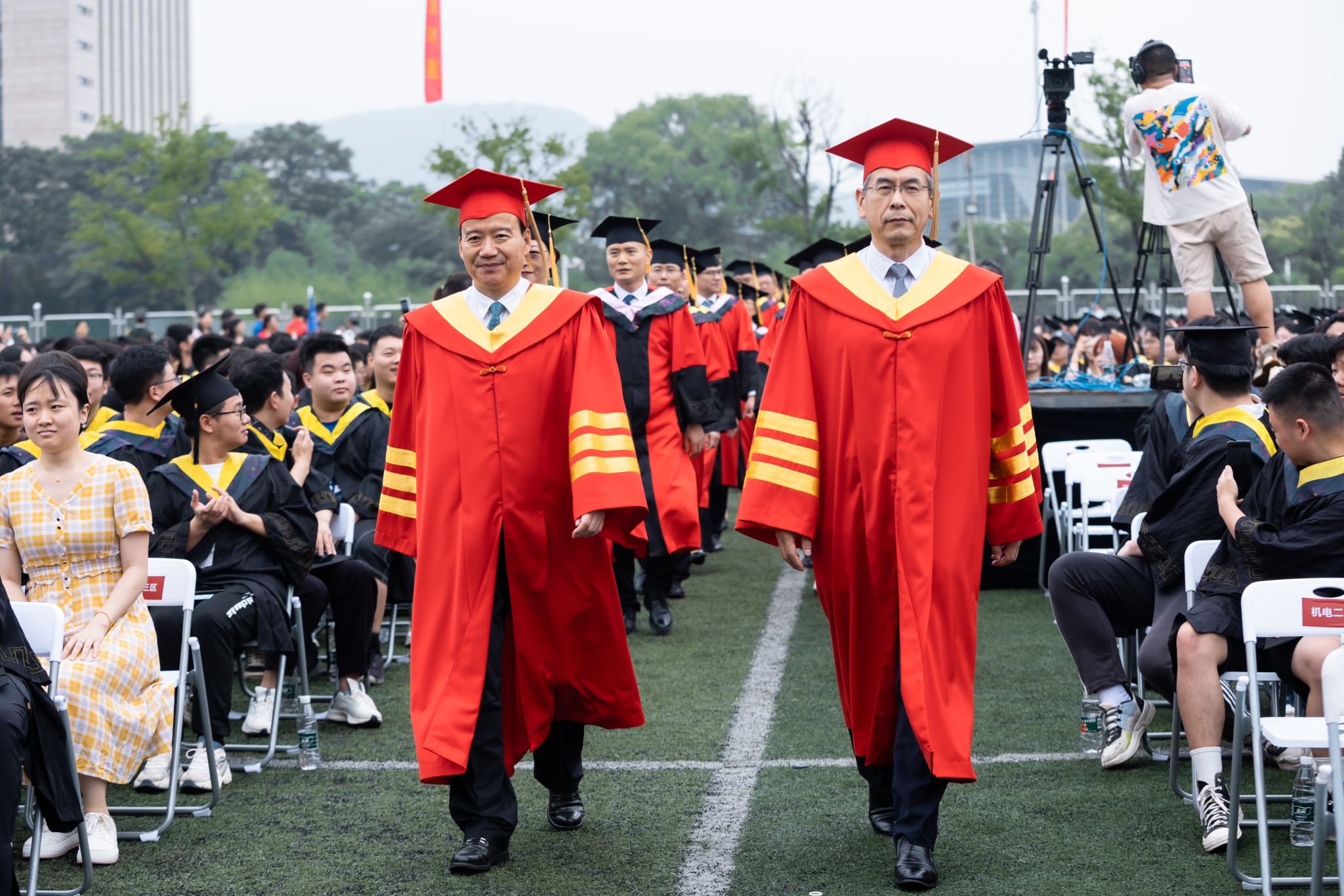 6月20日上午,sjb世俱杯2023届毕业典礼暨学士学位授予仪式在江宁校区北区田径运动场举行,校党委书记刘志远、校长刘永彪、校党委副书记单晓峰、副校长倪杰、副校长高永祥、纪委书记王延光、副校长顾晓燕、副校长叶智锐出席毕业典礼,校学位评定委员会委员、校本科学生工作委员会成员、二级学院主要负责人、教授代表、教职工代表、全体2023届毕业生以及家长代表齐聚一堂,共同见证了2023届毕业生这一人生中的重要时刻。毕业典礼由单晓峰主持。