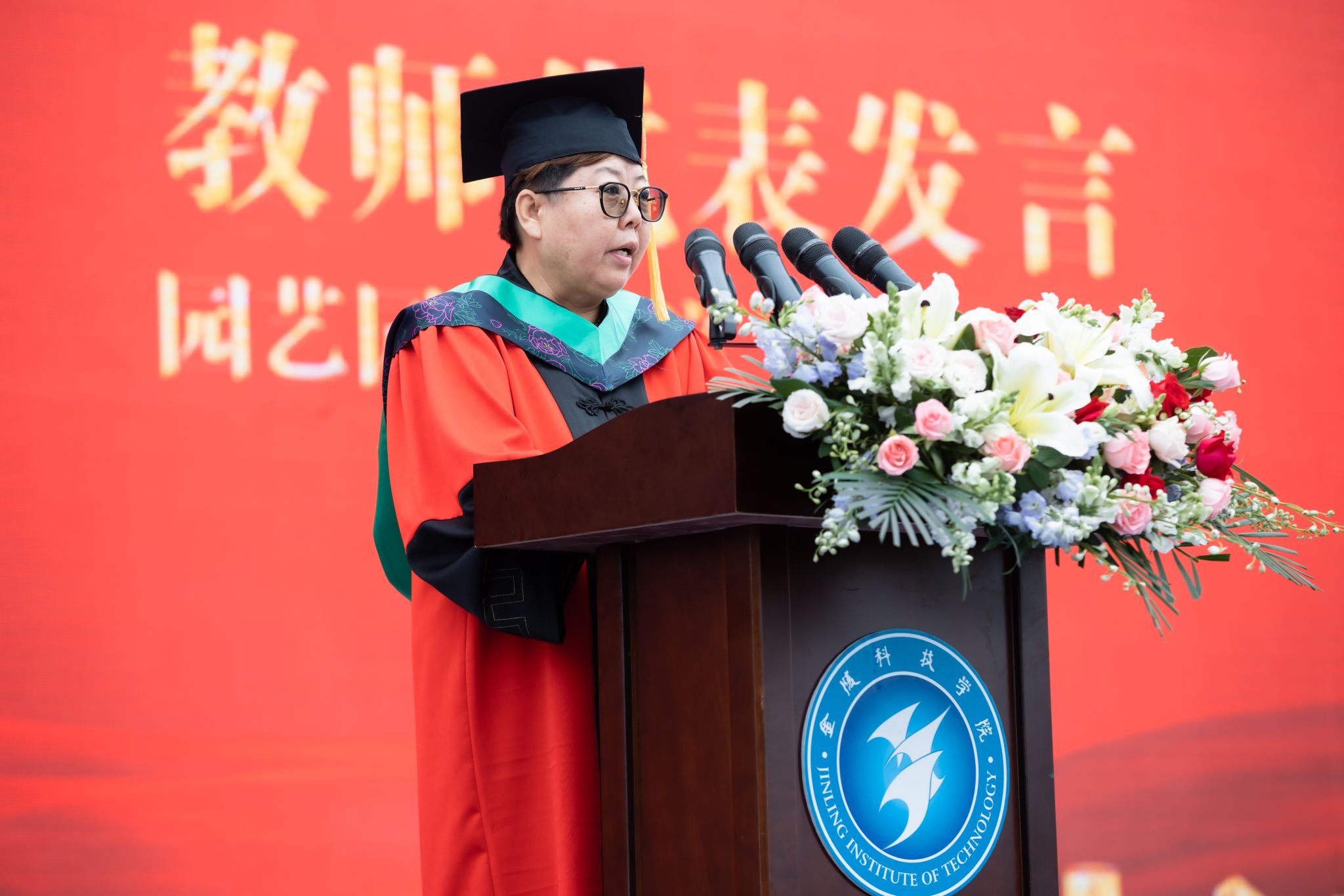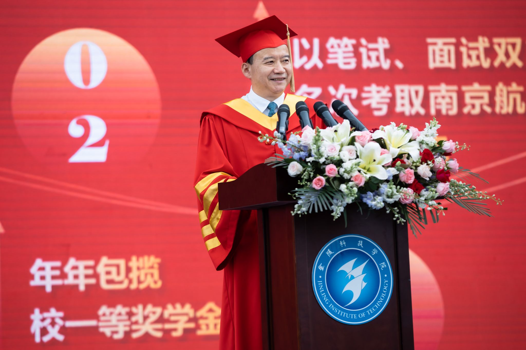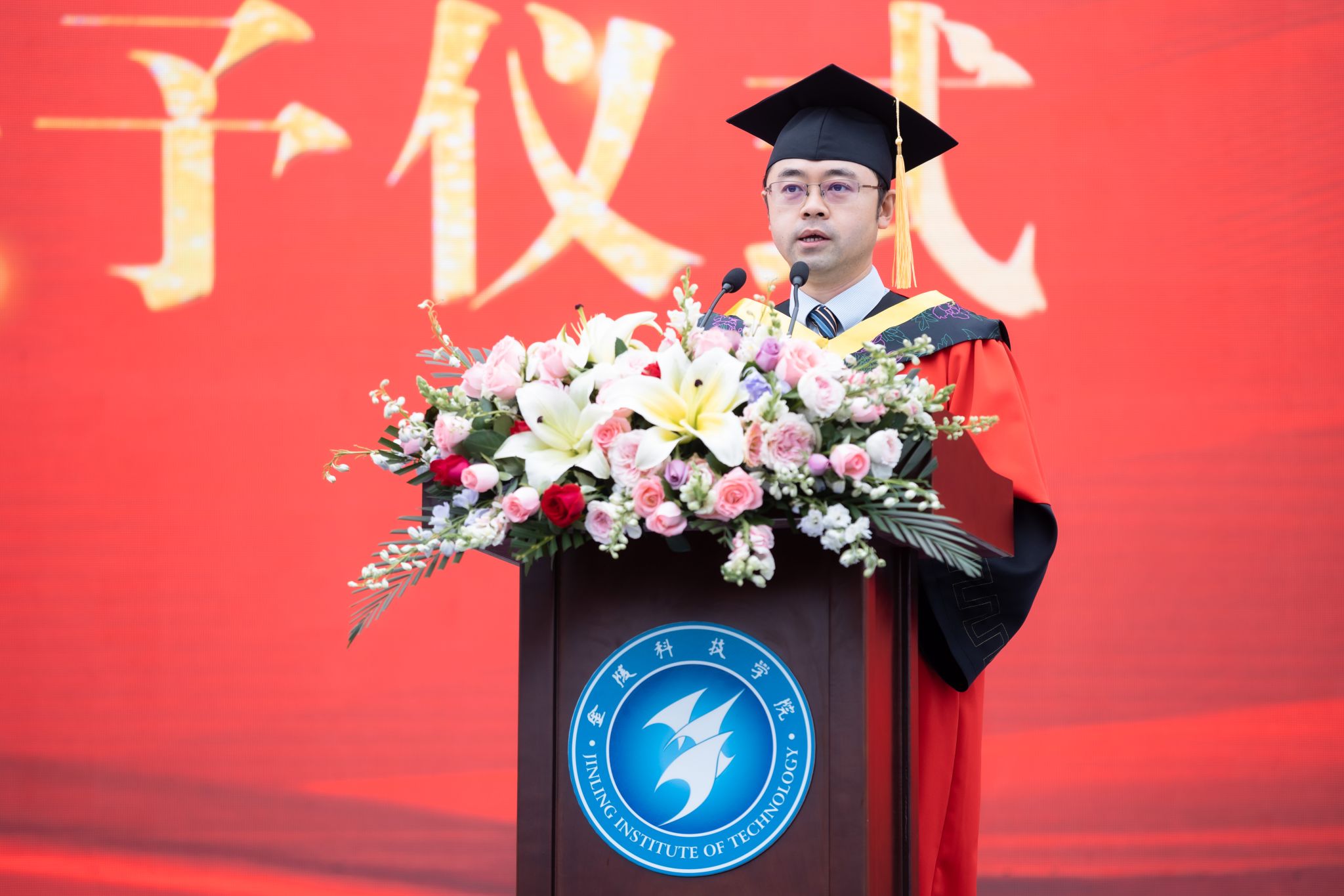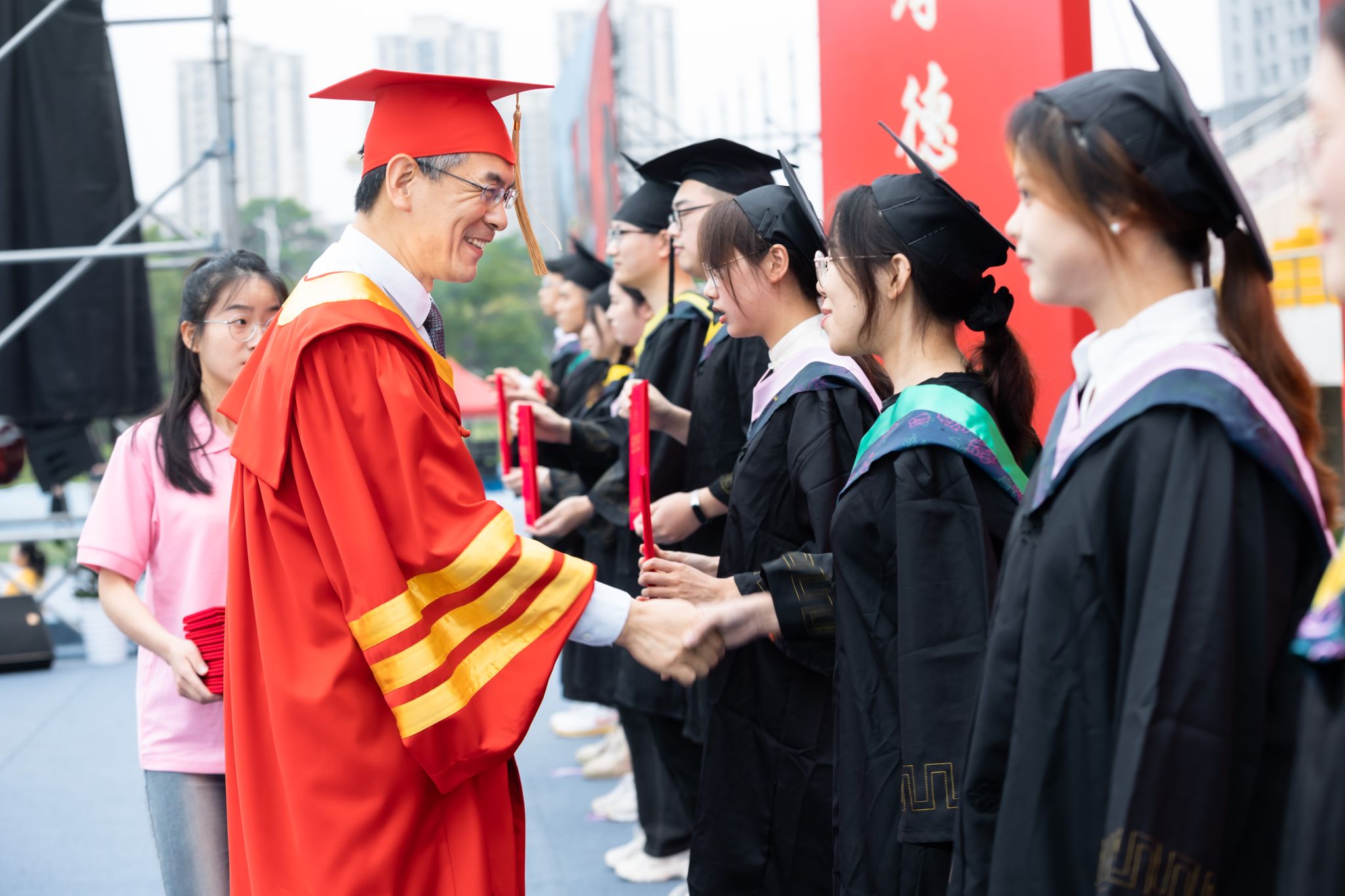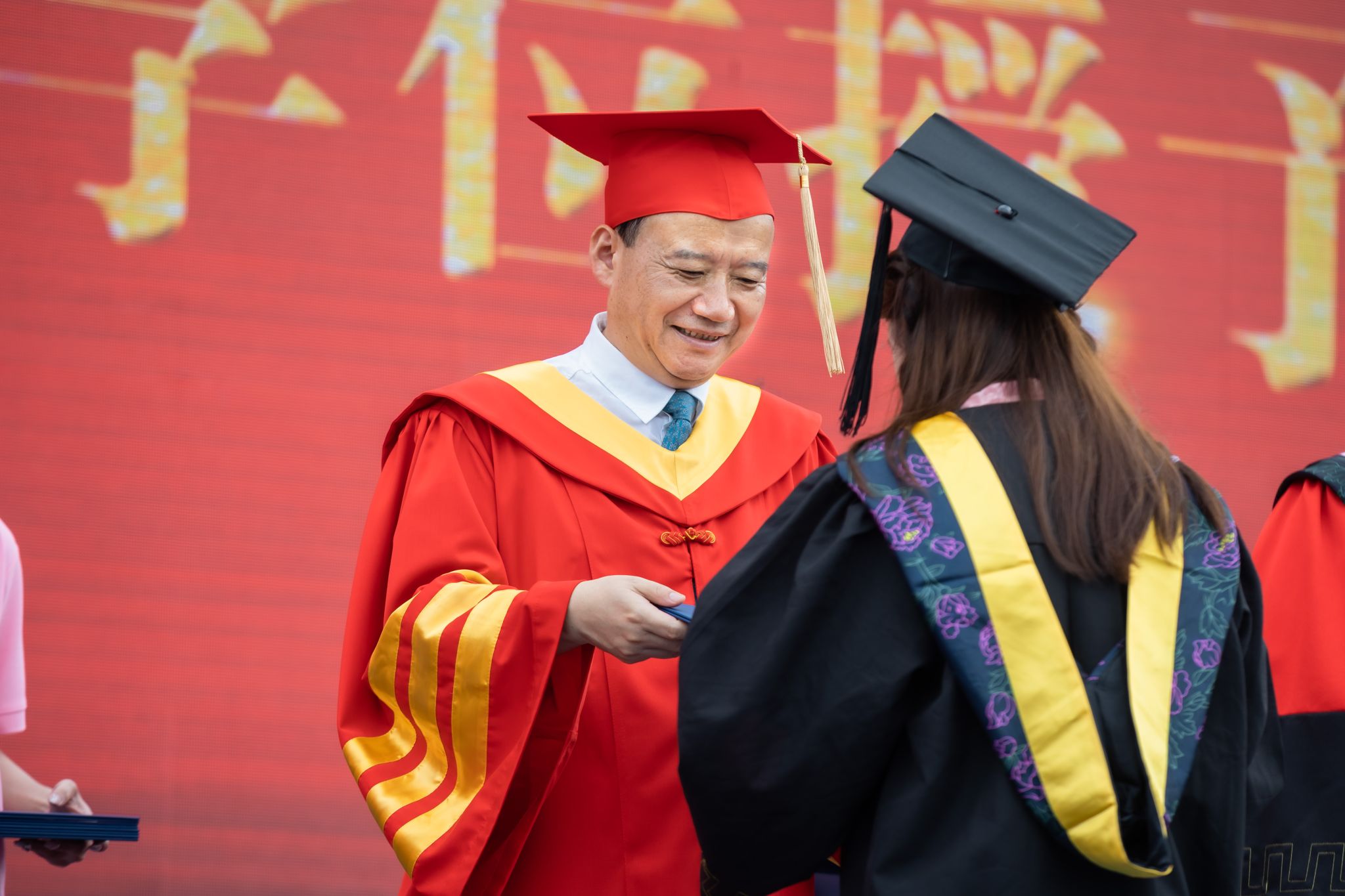 校学位评定委员会主席、校长刘永彪对圆满完成学业的毕业生表示热烈祝贺。他以《奋斗是青春的底色 不凡是生命的追求》为题殷切寄语毕业生们,希望大家无论面对什么样的境遇,都要依靠辛勤努力,创造属于自己的精彩人生,让顽强奋斗、艰苦奋斗、不懈奋斗成为青春最厚重的底色。他希望大家认识到,平凡是生活的常态和本色,不凡是生命的追求和希冀,在平凡的岗位上要坚持做好每一件事,以豁达之心、坚韧之志、奋斗之态担当作为、执着进取,创造不凡的社会价值,书写不凡的人生华章。他送给毕业生三点嘱托:一是怀揣梦想,保持“自强不息”的奋斗姿态,在平凡中追求不凡,以满格状态走好平凡生活的每一步,就是青春最美的样子。二是锤炼意志,培养“水滴石穿”的坚韧品格,在平凡的生活中坚守住心中的热爱,无惧挑战与困难、直面挫折与失败,就会赢得人生的精彩。三是涵养胸襟,追求“乐观豁达”的人生境界,树立正确的顺逆观,以宽广的胸怀积极面对可能到来的困难,就有机会创造美好的明天。