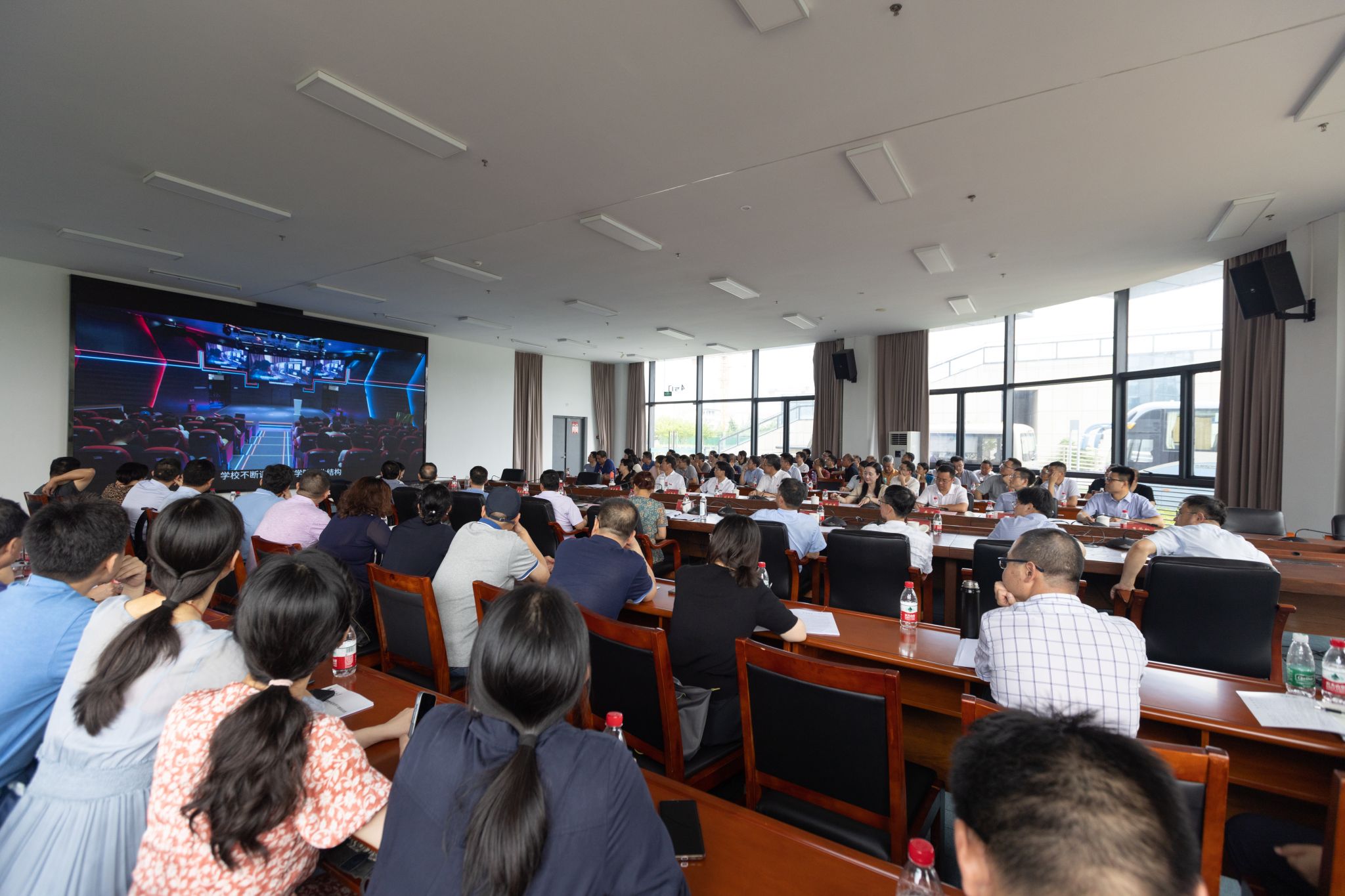 7月4日下午,衢州学院党委书记杨玲、校长郑友取带领校领导班子和中层干部一行70余人来sjb世俱杯调研交流。sjb世俱杯党委书记刘志远、副校长顾晓燕、副校长叶智锐及党委办公室、教务处、科技处、研究生处、教学质量评估中心负责人参加交流座谈。