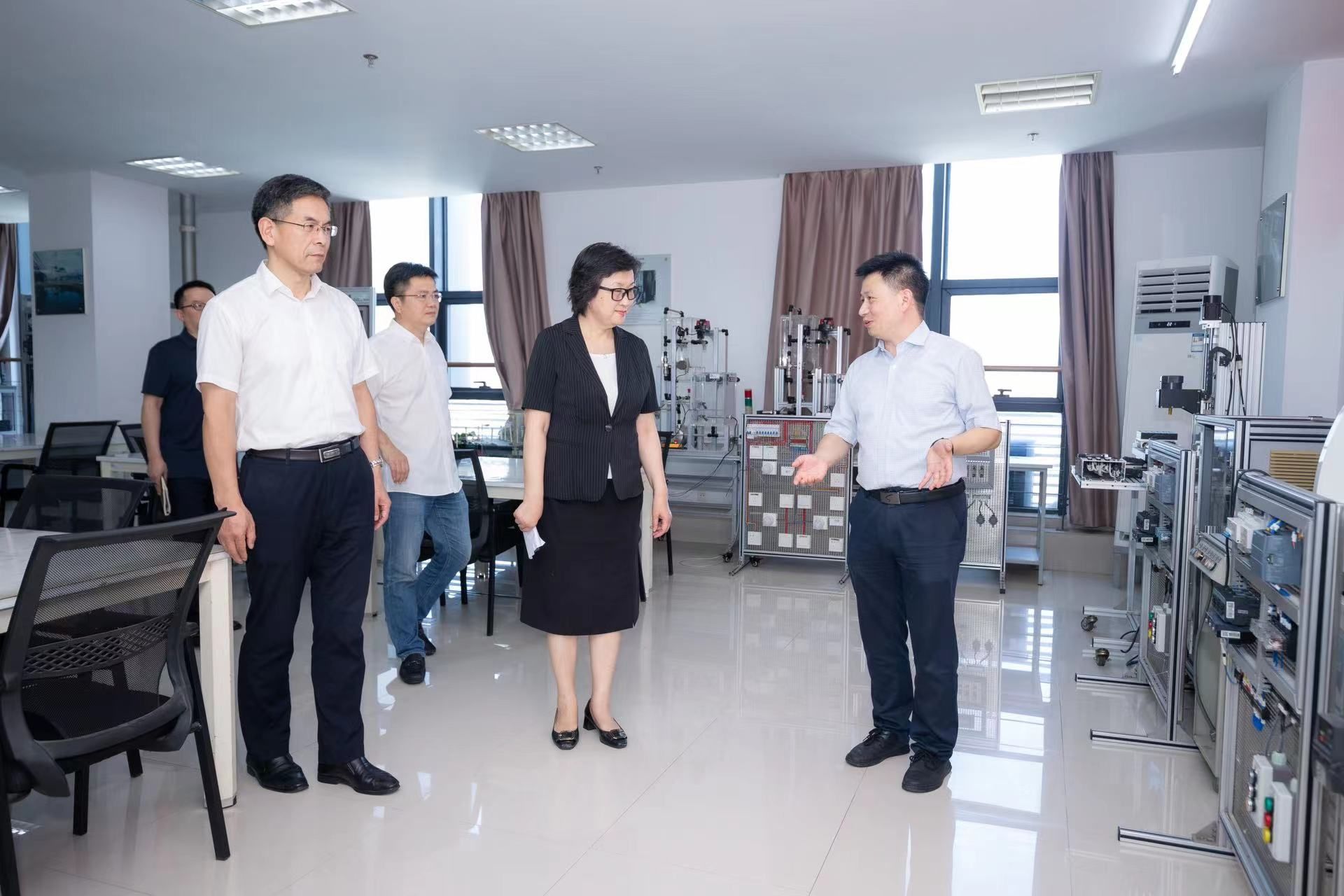 徐育斐一行实地考察了sjb世俱杯艺术学院实验中心和机电工程学院实验中心。座谈中,南京市教育局介绍了在宁高校概况及市属高校基本情况;南京晓庄学院、南京城市职业学院、南京机电职业技术学院分别介绍本校办学特色、发展举措等情况。与会人员就高等教育高质量发展有关问题进行了交流讨论。