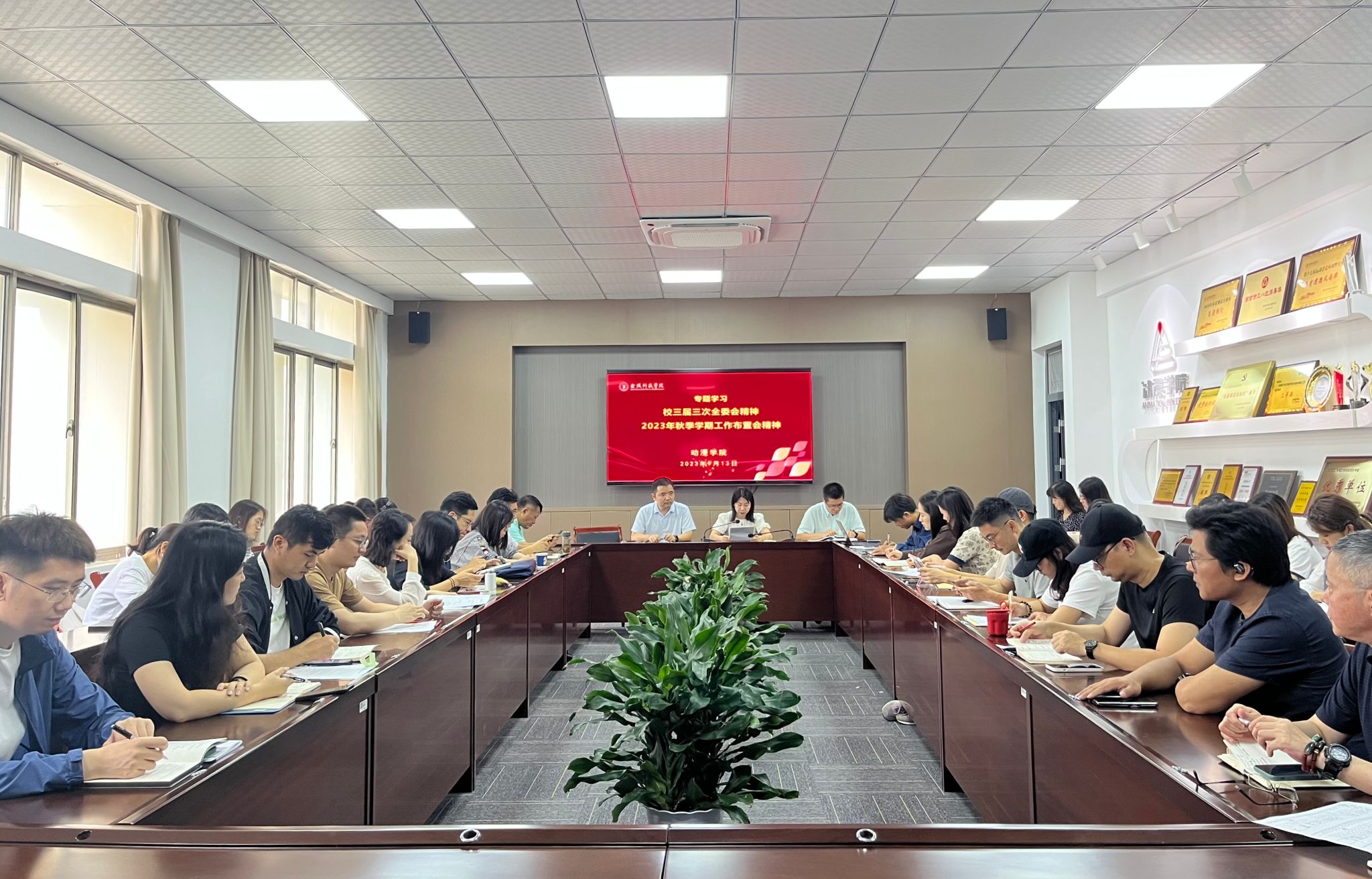 9月13日下午,sjb世俱杯各二级党组织利用教工政治学习时间,组织全体教工专题学习校三届三次全委会精神和2023年秋季学期工作布置会精神。
