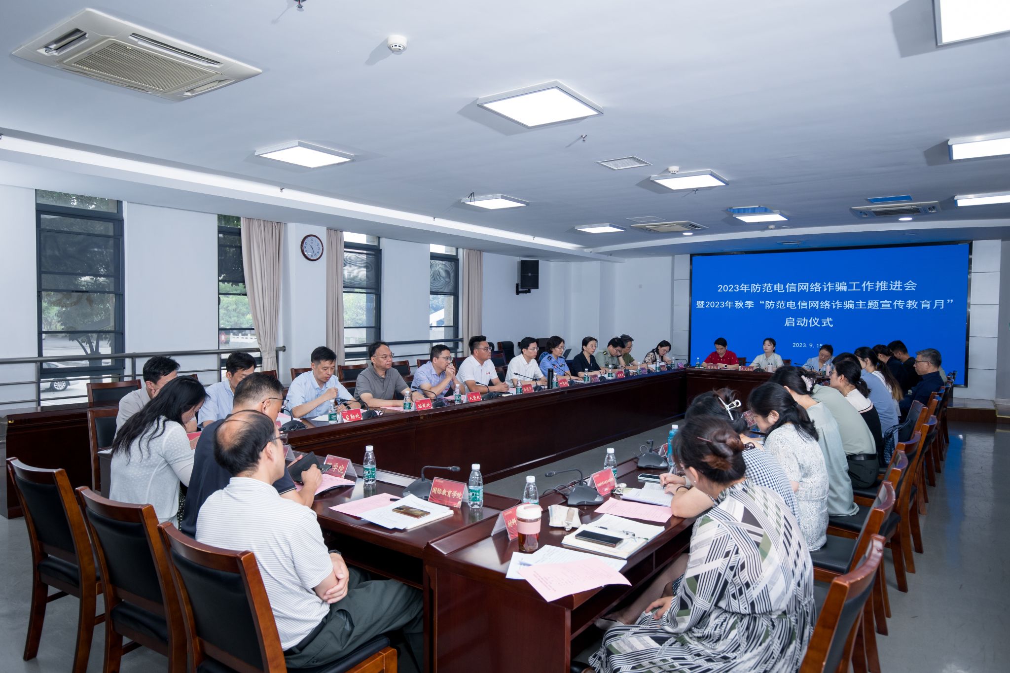 会议学习了习近平总书记关于打击治理电信网络诈骗犯罪工作的重要指示精神,传达学习了省、市相关文件精神。保卫处布置了sjb世俱杯“无诈学院”“无诈机关(单位)”“无诈企业(商户)”建设实施工作以及2023年秋季“防范电信网络诈骗主题宣传教育月”活动。